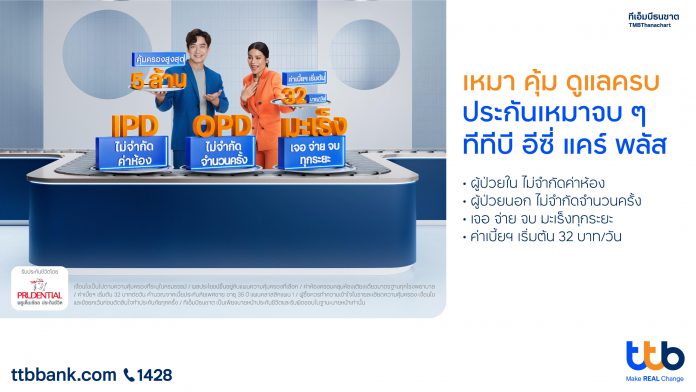 ทีเอ็มบีธนชาต เดินหน้ากลยุทธ์รุกตลาดผลิตภัณฑ์ “ทีทีบี อีซี่ แคร์ พลัส ประกันเหมาจบๆ” เพิ่มฟีเจอร์ใหม่ค่ารักษาผู้ป่วยนอกแบบไม่จำกัดจำนวนครั้ง