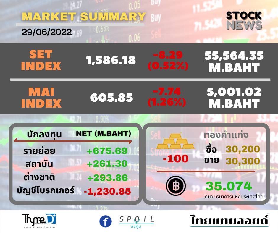 ภาวะการลงทุนในตลาดหลักทรัพย์ไทย ประจำวันที่ 29 มิถุนายน 2565