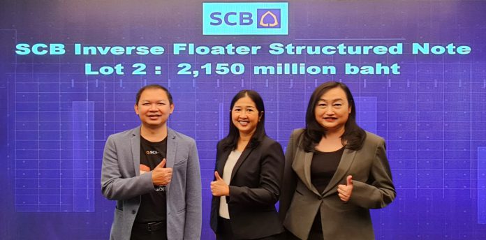 ได้กระแสการตอบรับการลงทุนในหุ้นที่กู้มีอนุพันธ์แฝงอ้างอิงกับอัตราดอกเบี้ยประเภท Inverse Floater Note จากกลุ่มลูกค้าเวลธ์เป็นอย่างมาก จึงเปิดจำหน่ายหุ้นกู้ที่มีอนุพันธ์แฝง SCB Inverse Floater ครั้งที่ 2 /2565 ในวันที่ 27 – 28 มิถุนายน 2565 แต่เปิดจำหน่ายได้เพียง 1 วัน ยอดจองซื้อเต็มจำนวนอีกแล้ว มูลค่าเสนอขาย 2,150 ล้านบาท อายุ 2 ปี เงินลงทุนขั้นต่ำ 5 ล้านบาท ทวีคูณครั้งละ 1 ล้านบาท จ่ายผลตอบแทนทุก 3 เดือน แบบลอยตัว และสวนทางกับอัตราดอกเบี้ยอ้างอิง (Thai Overnight Repurchase Rate – THOR) ครบกำหนดไถ่ถอนในปี 2567 เริ่มนับจากวันที่ออกตราสารในวันที่ 29 มิถุนายน 2565 – 28 มิถุนายน 2567