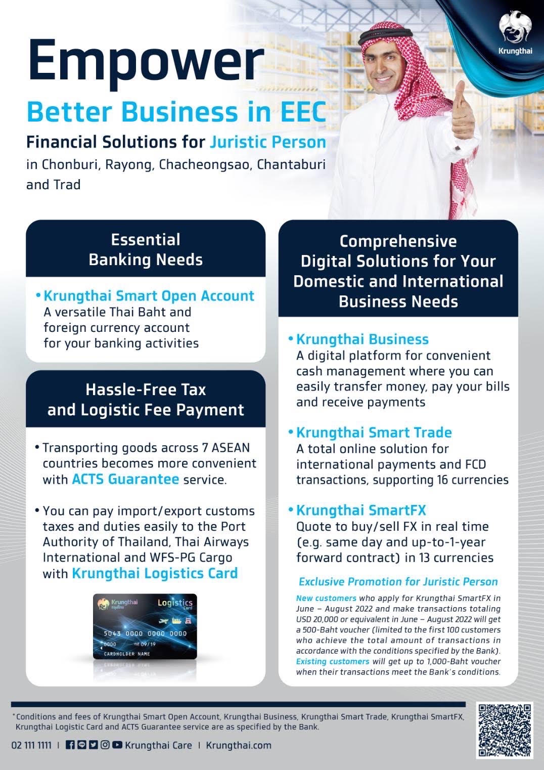 สำหรับลูกค้าที่สนใจสามารถอ่านรายละเอียดเพิ่มเติมที่ https://krungthai.com/th/content/eec-solution หรือสอบถามเพิ่มเติมได้ที่ หรือ Krungthai Contact Center โทร. 02-111-1111