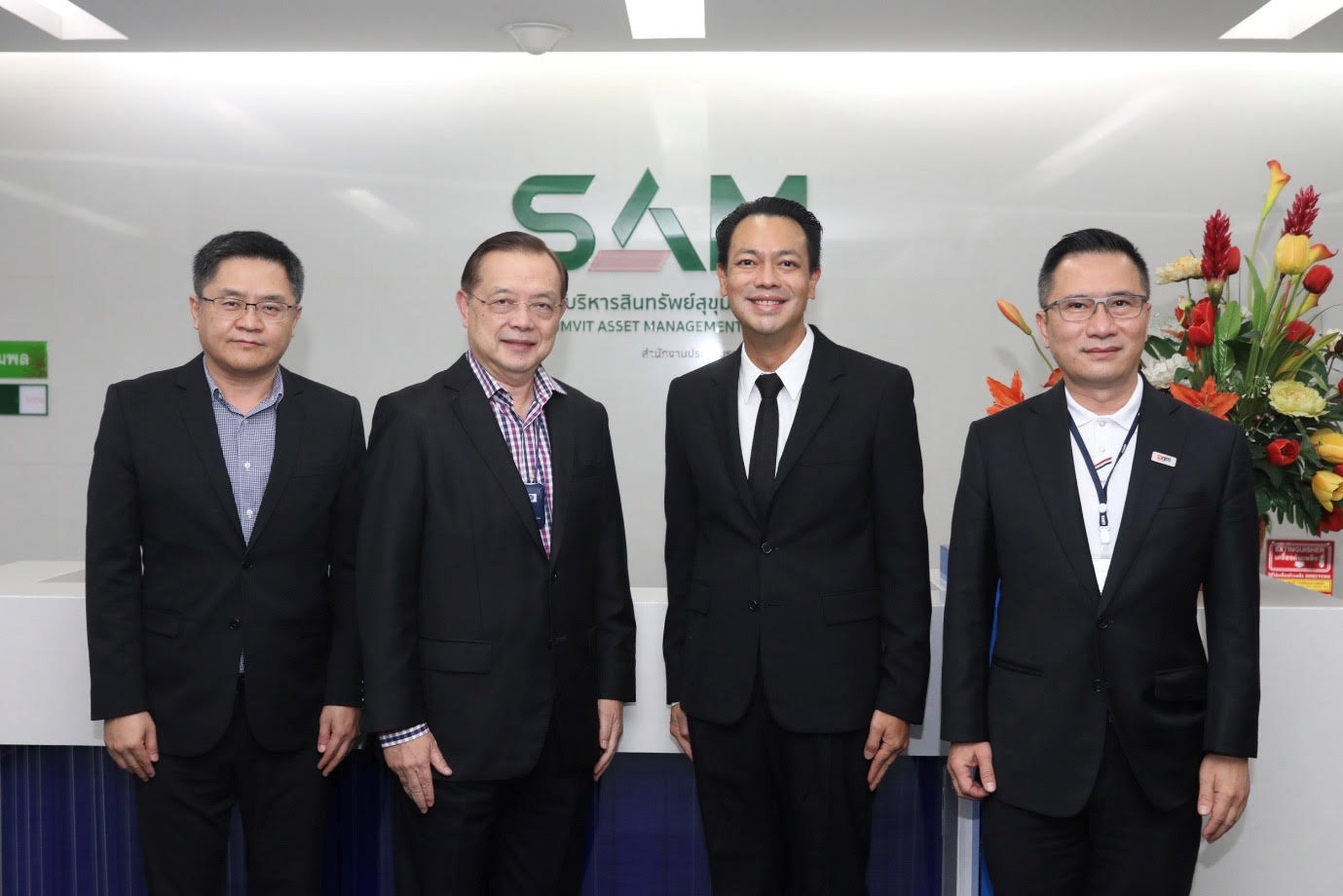นายปริญญา พัฒนภักดี (ที่ 2 จากซ้าย) ในโอกาสเข้ารับตำแหน่งประธานกรรมการ บริษัท บริหารสินทรัพย์สุขุมวิท จำกัด (SAM) ณ SAM สำนักงาน