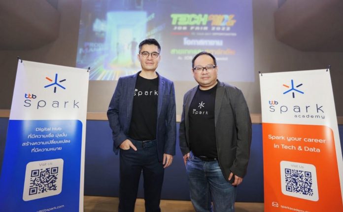 ทีเอ็มบีธนชาต หรือ ทีทีบี ร่วมออกบูธในงาน Tech ConNEXT Job Fair 2022 พร้อมร่วมเวทีเอ็กซ์คลูซีฟทอล์ค แชร์ประสบการณ์และสร้างแรงบันดาลใจให้กับผู้ที่มีความสนใจสายงาน FinTech ซึ่งเป็นสายงานที่ต้องการสูงในตลาดแรงงาน เนื่องจากอุตสาหกรรมมีแนวโน้มเติบโตอย่างต่อเนื่อง พร้อมเปิดโอกาสให้คนรุ่นใหม่ไฟแรงมาร่วมทีมดิจิทัล ทีทีบี สปาร์ค (ttb spark) เพื่อต่อยอดความรู้และพัฒนาศักยภาพการทำงานด้านดิจิทัล โดยไม่จำเป็นต้องจบสาขา Tech และ Data ขอเพียงมีความตั้งใจแน่วแน่กับเป้าหมายที่ต้องการแก้ปัญหาทางการเงินให้ผู้คนด้วยเทคโนโลยี เพื่อสร้างชีวิตทางการเงินที่ดีขึ้นให้คนไทย ผ่านดิจิทัลโซลูชันทางการเงินที่ตอบสนองความต้องการของผู้คน