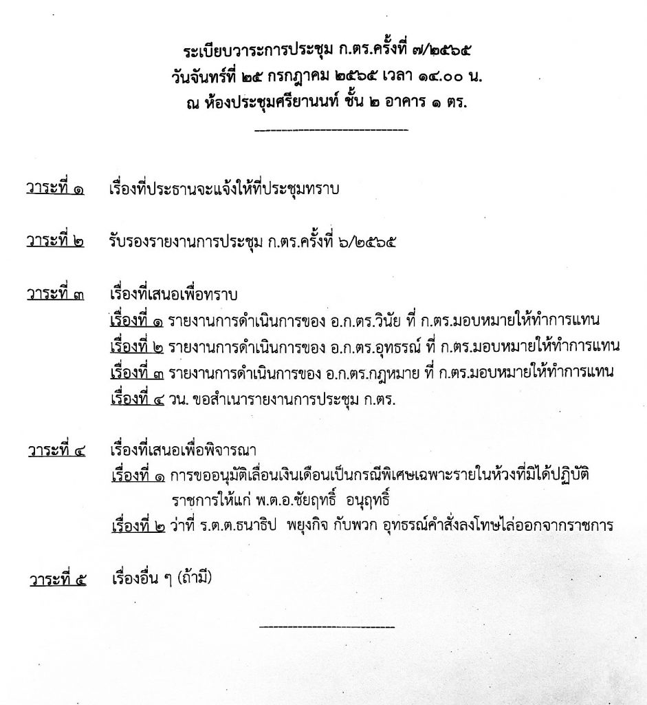 วันที่ 23 กรกฎาคม 2565 ผู้สื่อข่าวรายงานว่า ในวันจันทร์ที่ 25 กรกฎาคม 2565 เวลา 14.00 น. ที่ห้องประชุมศรียานนท์ ชั้น 2 อาคาร 1 สำนักงานตำรวจแห่งชาติ พลเอกประยุทธ์ จันทร์โอชา นายกรัฐมนตรี จะเป็นประธานการประชุมคณะกรรมการข้าราชการตำรวจ หรือ ก.ตร.ครั้งที่ 7/2565 มีวาระน่าสนใจ ดังนี้ วาระที่ 1 เรื่องที่ประธานจะแจ้งให้ที่ประชุมทราบ, วาระที่ 2 รับรองรายงานการประชุม ก.ตร.ครั้งที่ 6/2565, วาระที่ 3 เรื่องที่เสนอเพื่อทราบ ดังนี้ เรื่องที่ 1 รายงานการดำเนินการของ อ.ก.ตร.วินัย ที่ ก.ตร.มอบหมายให้ทำการแทน, เรื่องที่ 2 รายงานการดำเนินการของ อ.ก.ตร.อุทธรณ์ ที่ ก.ตร.มอบหมายให้ทำการแทน, เรื่องที่ 3 รายงานการดำเนินการของ อ.ก.ตร.กฎหมาย ที่ ก.ตร.มอบหมายให้ทำการแทน, เรื่องที่ 4 วน. ขอสำเนารายงานการประชุม ก.ตร.