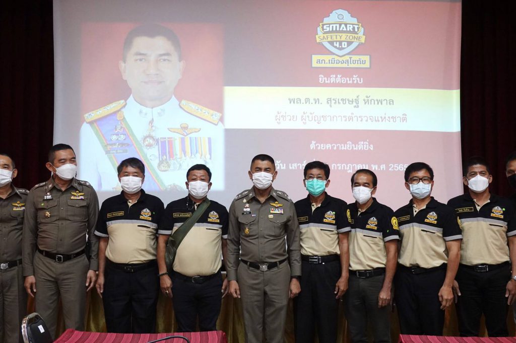 วันที่ 23 กรกฏาคม 2565 เวลา 12.30 น. พล.ต.ท.สุรเชษฐ์ หักพาล ผู้ช่วย ผบ.ตร.(ปป.1) ประธานกรรมการประเมินโครงการ Smart Safety Zone 4.0 พร้อมด้วย พล.ต.ต.พนัญชัย ชื่นใจธรรม รอง ผบช.ภ.1 ,พ.ต.อ.กัมพล รัตนประทีป รอง ผบก.ภ.จว.พิจิตร,พร้อมคณะกรรมการและเจ้าหน้าที่ที่เกี่ยวข้องเดินทางมาตรวจเยี่ยมพื้นที่ดำเนินการโครงการ Smart Safety Zone 4.0 สภ.เมืองสุโขทัย ซึ่งเป็นโรงพักนำร่อง หนึ่งในร้อยสถานีตำรวจ เฟสที่ 2 ตามโครงการนี้ ตลอดจนติดตามความคืบหน้า ในการใช้เทคโนโลยีเป็นเครื่องมือในการป้องกันอาชญากรรม เพื่อให้การป้องกันอาชญากรรมในโครงการดังกล่าวมีให้ประสิทธิภาพสูงสุด โดยมี พล.ต.ต.อมรศักดิ์ เกษมก์สิริ ผบก.ภ.จว.สุโขทัย , พ.ต.อ.ไสว ครุธผาสุข รอง ผบก.ภ.จว.สุโขทัย พ.ต.อ.ไพบูลย์ กาศอุดม ผกก.สภ.เมืองสุโขทัย และภาคีเครือข่ายป้องกันอาชญากรรม (Big 6) ในพื้นที่ตามโครงการ Smart Safety Zone 4.0 ให้การต้อนรับ 1. นายไพรัช กิ่งก้าน สมาชิกสภาเทศบาลเขต3 เทศบาลเมืองสุโขทัยธานี/องค์กรปกครองส่วนท้องถิ่น, 2. นายสุรพล อังคศิริจินดา ผู้ทรงคุณวุฒิเทศบาลเมืองสุโขทัยธานี/องค์กรปกครองส่วนท้องถิ่น, 3.นายปริญา ตังคณานุกูลชัย ปลัดอำเภอเมืองสุโขทัย/หน่วยงานภาครัฐ, 4. นายวีระ บัวนุ่ม รอง ผอ.วิทยาลัยอาชีวศึกษาสุโขทัย/หน่วยงานภาครัฐ, 5. นางนุศรา บุญผล กำนันตำบลยางซ้าย/หน่วยงานภาครัฐ, 6. นายสันติ แซ่ตั้ง ผู้ประกอบการธุรกิจ/ภาคประชาชน, 7. นายสมคิด เดชชุษณะนาถ ผู้ประกอบการธุรกิจ/ภาคประชาชน, 8. นายสุรพล อังคศิริจินดา เจ้าของกิจการปั๊มคอลเทกซ์/ภาคธุรกิจ, 9. นายสังเวียน คำรุณ เจ้าของกิจการอารยาเพิ่มพูน/ภาคธุรกิจบัณฑิต, 10. นายชัชวาล พรอำนวยทรัพย์ สื่อมวลชน พร้อมรับฟังบรรยายสรุปผลการดำเนินการโครงการ และชมวิดิทัศน์การปฏิบัติการที่สำคัญในโครงการ