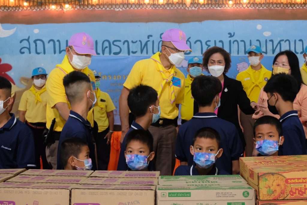 ต่อมาเวลา 10.30 น. ผบ.ตร. พร้อมคณะได้เดินทางไปยังสถานสงเคราะห์เด็กชายบ้านมหาเมฆ มอบสิ่งของให้กับเด็กชาย อายุ 6 – 18 ปี ที่ประสบปัญหาต่างๆ ด้านครอบครัวและสังคม จำนวน 171 คน เพื่อถวายเป็นพระราชกุศล