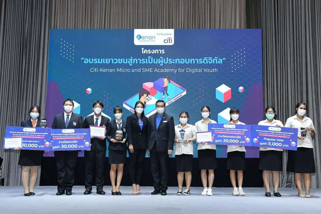 มูลนิธิคีนันแห่งเอเซีย ร่วมกับ มูลนิธิซิตี้ จัดงานประกาศผลสำเร็จโครงการอบรมเยาวชนสู่การเป็นผู้ประกอบการดิจิทัล Citi-Kenan Micro and SME Academy for Digital Youth จากการเปิดเวทีการแข่งขันนำเสนอแผนธุรกิจ เพื่อเฟ้นหาเยาวชนคนรุ่นใหม่ทุกสายอาชีพและทุกกลุ่มที่มีความสนใจในการเป็นผู้ประกอบการ ซึ่งสามารถประยุกต์ความรู้สายอาชีวศึกษาในการเป็นผู้ประกอบการได้อย่างชัดเจน และตอบโจทย์ตลาดออนไลน์ เปิดโอกาสในการพัฒนาตนเอง ทั้งยังเสริมสร้างทักษะที่จำเป็นเพื่อเข้าถึงทักษะอาชีพ ตลาดแรงงาน และแหล่งเงินทุน พร้อมชิงเงินรางวัลตั้งต้นธุรกิจ หรือพัฒนาธุรกิจออนไลน์ โดยภายในงานได้รับเกียรติจาก นายมณฑล ภาคสุวรรณ์ รองเลขาธิการคณะกรรมการการอาชีวศึกษา เป็นประธานในพิธี