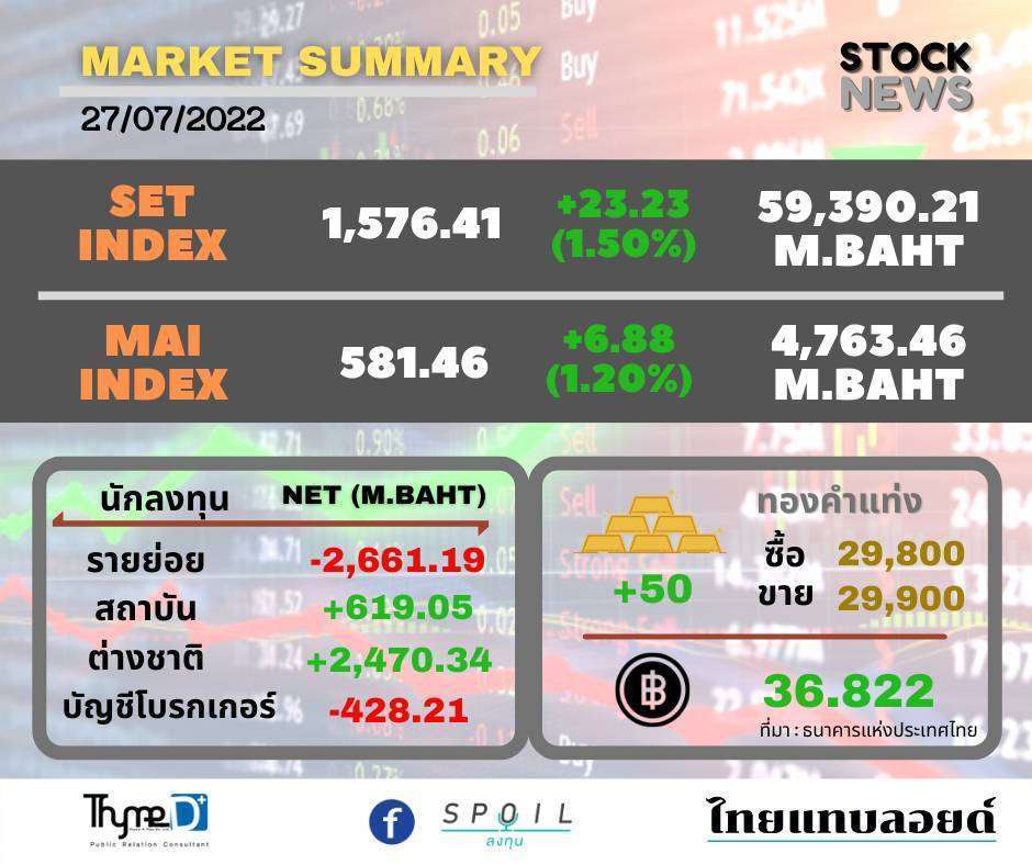 SET ปิด 1,576.41 จุด เพิ่มขึ้น 23.23 จุด (+1.50%) มูลค่าการซื้อขายราว 59,390.21 ล้านบาท