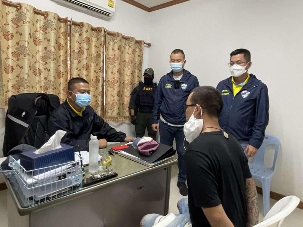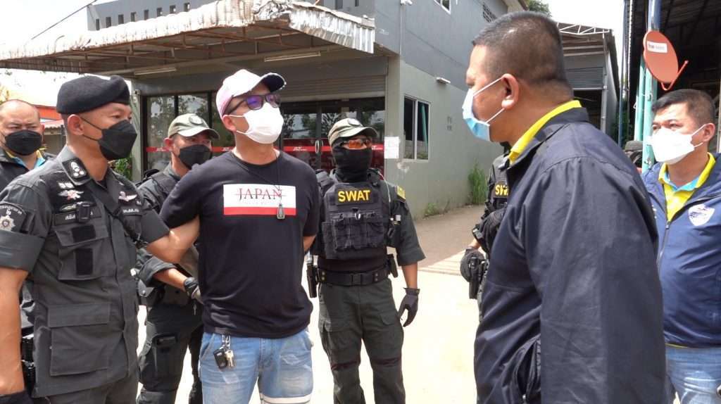 ในชั้นจับกุม นายอรรถชัย ฯ ให้การรับสารภาพตลอดข้อกล่าวหาว่า “วันนี้ตนได้รับการประสานจากผู้ร่วมขบวนการที่อยู่ฝั่งประเทศกัมพูชา ให้มารับคนไทยพาข้ามไปประเทศกัมพูชาทางช่องทางธรรมชาติ ซึ่งเป็นลำคลองเล็กๆเรียกว่า คลองบ้านตาโจ๊ย ใกล้กับวัดป่าหนองเอี่ยน โดยจะมีเรือพายพาข้ามแดนไปและจะมีคนจากกัมพูชามารับช่วงต่อ รับประสานส่งคนไปแบบนี้หลายแก๊งแล้ว เฉลี่ยเดือนละ 15-20 คน ได้ค่าจ้าง 6,000 บาท ต่อคน ล่าสุดพึ่งถูกจับกุมและอยู่ในระหว่างการประกันตัวสู้คดี แต่กลับมาทำอีกเพราะทำจนชินไม่รู้จะไปทำงานอะไร” รอง ผบ.ตร. กล่าวต่อว่า จากการขยายผลพบพยานหลักฐานความเชื่อมโยงจึงได้รวบรวมพยานหลักฐานส่งให้พนักงานสอบสวน สภ.เมืองสมุทรปราการ ออกหมายจับไว้อีก 2 ราย คือ (1.) น.ส.รุ่งฤดี อุดมดี อายุ 38 ปี ที่อยู่ 33 ม.11 ต.กาบิน อ.กุดข้าวปุ้น จ.อุบลราชธานี, (2.) นายพงษ์ธนา พิมพา อายุ 36 ปี ที่อยู่ 114 ม.2 ต.บ้านใหม่หนองไทร อ.อรัญประเทศ จ.สระแก้ว ตามหมายจับศาลจังหวัดสมุทรปราการ ข้อหา “ร่วมกันฉ้อโกงประชาชนโดยแสดงตนเป็นคนอื่น , ร่วมเป็นอั้งยี่ , ร่วมกันเป็นซ่องโจร , ร่วมกันมีส่วนร่วมในองค์กรอาชญากรรมข้ามชาติ , ร่วมกันโดยทุจริตหลอกลวง นำเข้าสู่ระบบคอมพิวเตอร์ที่บิดเบือนหรือปลอมไม่ว่าทั้งหมดหรือบางส่วน หรือข้อมูลคอมพิวเตอร์อันเป็นเท็จ โดยประการที่น่าจะเกิดความเสียหายแก่ประชาชน และร่วมกันฟอกเงิน” ซึ่งจะได้เร่งติดตามจับกุมตัวมาดำเนินคดีต่อไป