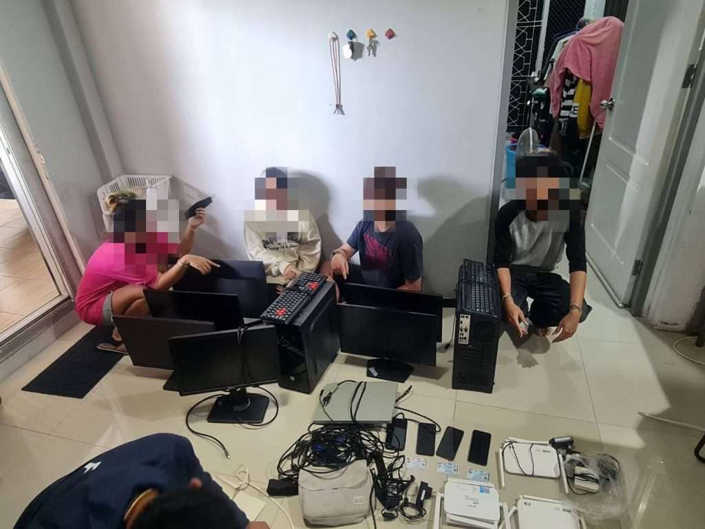 และได้ร่วมกันจับกุมตัวผู้ต้องหาจำนวน 4 คน คือ (1). นายสราวุธ มูลฟู อายุ 20 ปี ที่อยู่ 94 หมู่ที่ 12 ต.คลองหินปูน อ.วังน้ำเย็น จ.สระแก้ว, (2). นายณัฐภัทร ทองใส อายุ 21 ปี ที่อยู่ 367 หมู่ที่ 13 ต.คลองหินปูน อ.วังน้ำเย็น จ.สระแก้ว, (3). น.ส.ทิพวรรณ รวมขุนทด อายุ 23 ปี ที่อยู่ 39/1 หมู่ที่ 14 ต.คลองหินปูน อ.วังน้ำเย็น จ.สระแก้ว, (4). น.ส.วารุณี ลำภา อายุ 26 ปี ที่อยู่ 26 หมู่ที่ 03 ตำบลโนนหมากเค็ง อำเภอวัฒนานคร จังหวัดสระแก้ว โดยกล่าวหาว่า “ร่วมกันจัดให้มีการเล่นการพนันออนไลน์พนันเอาทรัพย์สินกันโดยไม่ได้รับอนุญาต” ซึ่งทั้ง 4 ราย ให้การรับสารภาพว่า “มีหน้าที่ในการชักชวนให้บุคคลอื่น ๆ เข้าเล่นการพนันออนไลน์ ถาม-ตอบ ให้บริการลูกค้าผ่านแอพพลิเคชั่นไลน์ และโปรแกรมสนทนาอื่น ๆ ดูแลเรื่องระบบการฝาก-ถอน และปัญหาต่าง ๆ ของลูกค้า” จากนั้นจึงได้นำตัวผู้ต้องหาทั้ง 4 ราย พร้อมของกลางนำส่งพนักงานสอบสวน สน.คลองตันดำเนินคดีตามกฎหมายต่อไป