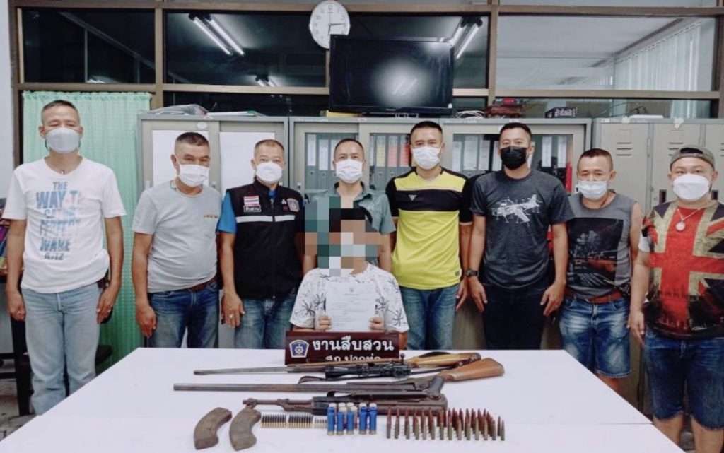 นายสมัคร รับว่า อาวุธปืนดังกล่าวเป็นของตนเอง โดยนายสมัครฯ สมัครใจและยินยอมพาเจ้าหน้าที่ไปตรวจสอบอาวุธปืนดังกล่าว จากการตรวจสอบพบของกลาง เป็นอาวุธปืนเล็กยาว แบบอาร์ก้า(AK.47 ) จำนวน 1 กระบอก, เครื่องกระสุนปืน ขนาด 7.62 มม. จำนวน 70 นัด, ซองบรรจุกระสุนอาวุธปืน แบบอาร์ก้า(AK.47 ) จำนวน 2 อัน พร้อมด้วยอาวุธปืนลูกซองยาว ขนาดเบอร์ 12 ปรากฎหมายเลขทะเบียนเลอะเลื่อน ไม่สามารถตรวจสอบได้ และไม่หมายเลขประจำตัวปืน จำนวน 1 กระบอกและเครื่องกระสุนปืนลูกซอง ขนาดเบอร์ 12 จำนวน 15 นัด อาวุธปืนยาว ขนาด .22 ไม่ปรากฎหมายเลขทะเบียน และหมายเลขประจำตัวปืน จำนวน กระบอก ,เครื่องกระสุนปืน ขนาด .22 มม. จำนวน 106 นัด เจ้าหน้าที่ชุดจับกุมจึงได้ร่วมกันทำการตรวจยึดของกลางทั้งหมด เพื่อดำเนินการนำส่ง พนักงานสอบสวน สภ.หนองหญ้าปล้อง เพื่อทำการตรวจสอบและดำเนินการตามกฎหมาย ต่อไป “ผบช.ภ.7 กล่าว”