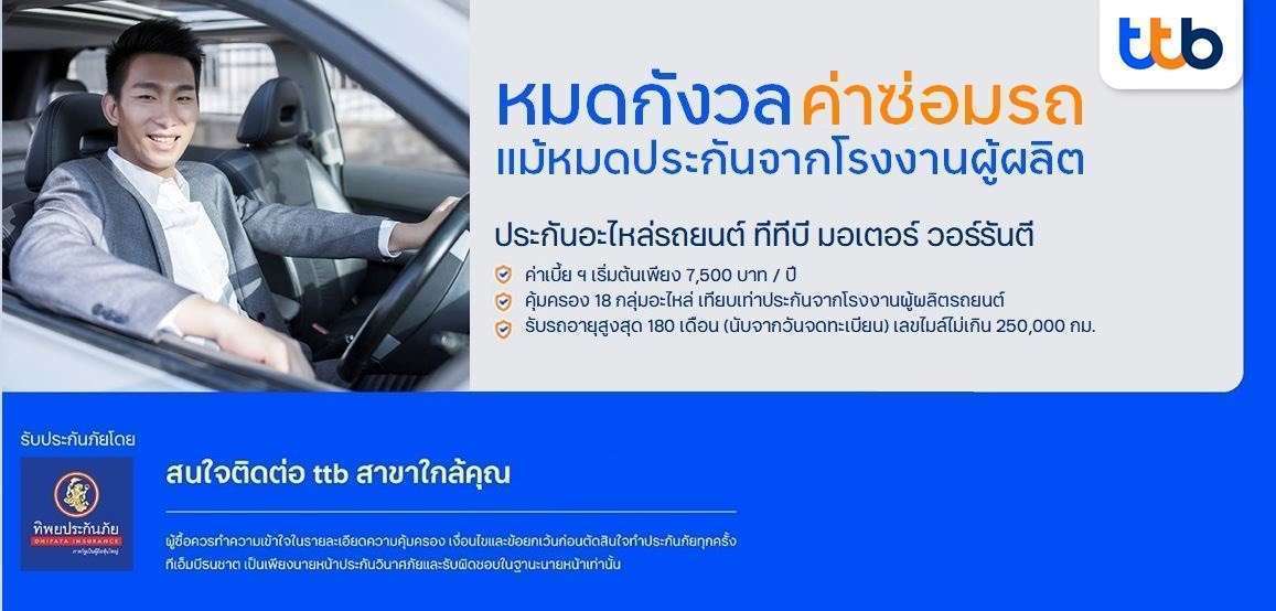 “ธนาคารมั่นใจว่าประกันอะไหล่รถยนต์ ทีทีบี มอเตอร์ วอร์รันตี จะช่วย