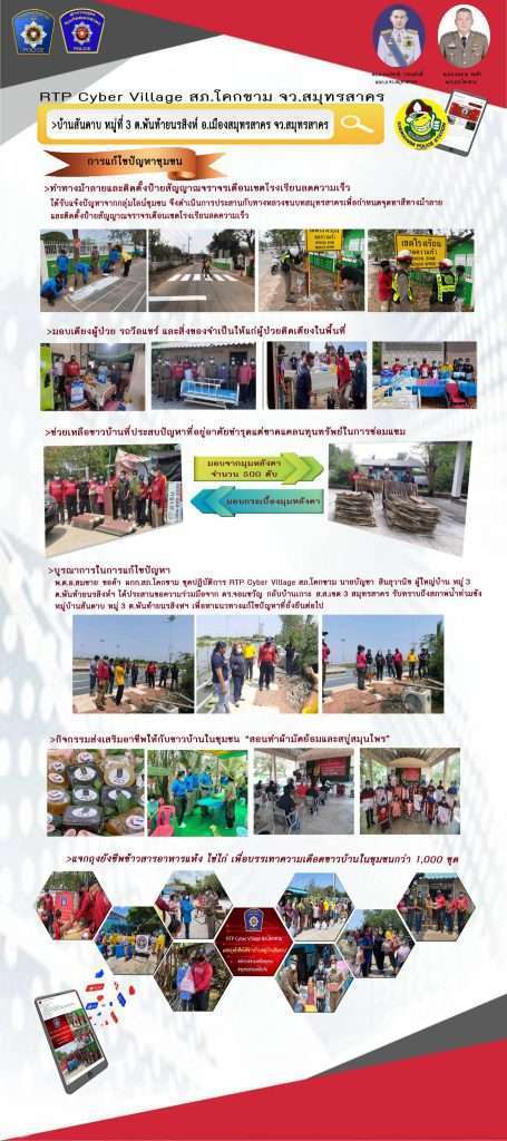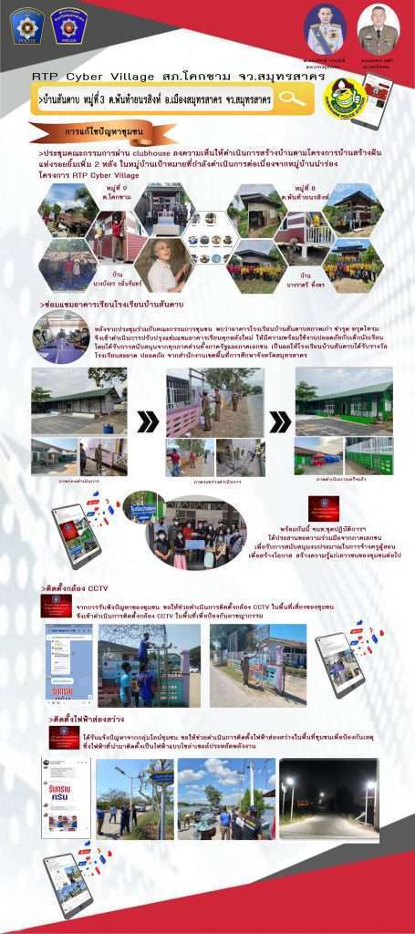วันที่ 4 ส.ค.2565 ที่โรงเรียนนายร้อยตำรวจ จ.นครปฐม พล.ต.ท.ประจวบ วงศ์สุข ผู้ช่วย ผบ.ตร. ได้รับมอบหมายจาก พล.ต.อ.สุวัฒน์ แจ้งยอดสุข ผบ.ตร. และ พล.ต.อ.รอย อิงคไพโรจน์ รอง ผบ.ตร. รับผิดชอบงานป้องกันปราบปรามอาชญากรรม ให้เดินทางมาเป็นประธานพิธีเปิดการสัมมนาทางวิชาการตามโครงการ RTP Cyber Village โดยมีผู้เข้าร่วมรับการสัมมนา เป็นผู้แทนจาก บช.น. และ ภ.1-9 ผู้แทนจากสถานีตำรวจที่ได้รับการพิจารณาคัดเลือกหมู่บ้านหรือชุมชน ที่ใช้เป็นต้นแบบ (Best Practice) จำนวน 10 แห่ง รวมถึงตัวแทนภาคประชาชนเข้าร่วมการสัมมนา โดยมีวัตถุประสงค์ เพื่อแลกเปลี่ยนความรู้ แสดงความคิดเห็น แบ่งปันประสบการณ์ เพื่อให้ได้รูปแบบการดำเนินงานตามโครงการที่ดีที่สุด (Best Model) นำมาปรับปรุงพัฒนาการดำเนินการตามโครงการ RTP Cyber Village ต่อไป