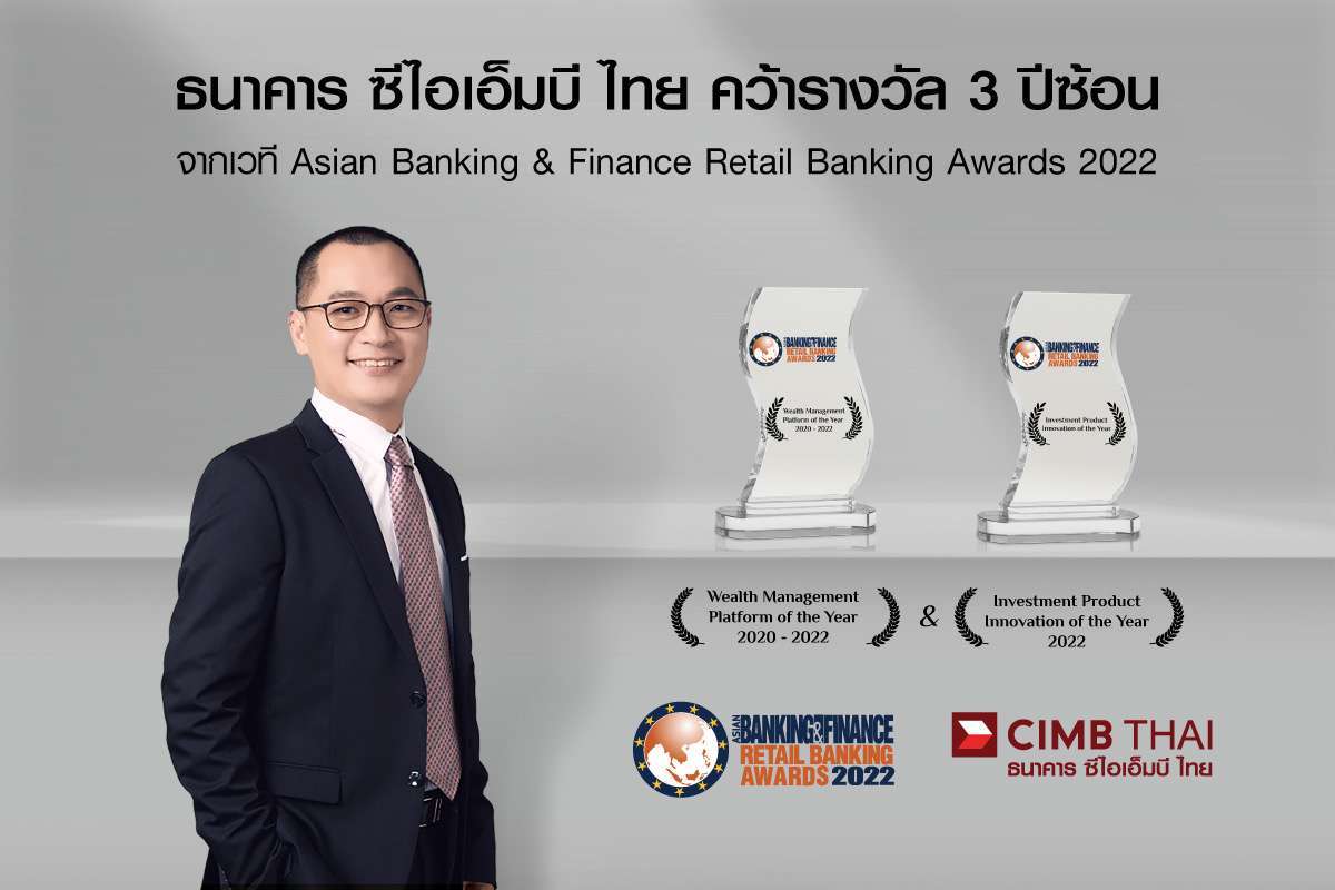 ตัน คีท จิน รองกรรมการผู้จัดการใหญ่ ธุรกิจรายย่อย ธนาคาร ซีไอเอ็มบี ไทย เปิดเผยว่า ธนาคารได้รับรางวัล Wealth Management Platform of the Year ของประเทศไทย จาก The Asian Banking & Finance Retail Banking Awards ปี 2020-2022 ติดต่อกัน 3 ปีซ้อน จากความมุ่งมั่นนำเสนอและเดินหน้าสำรวจวิธีการใหม่ๆ ในการเพิ่มความมั่งคั่งและให้บริการอย่างตอบสนองความคาดหวังของลูกค้าท่ามกลางสถานการณ์โควิด สะท้อนจากผลประกอบการที่แข็งแกร่งโดยสินทรัพย์ภายใต้การจัดการความมั่งคั่ง (AUM) ในปี 2564 เติบโต 19% YoY