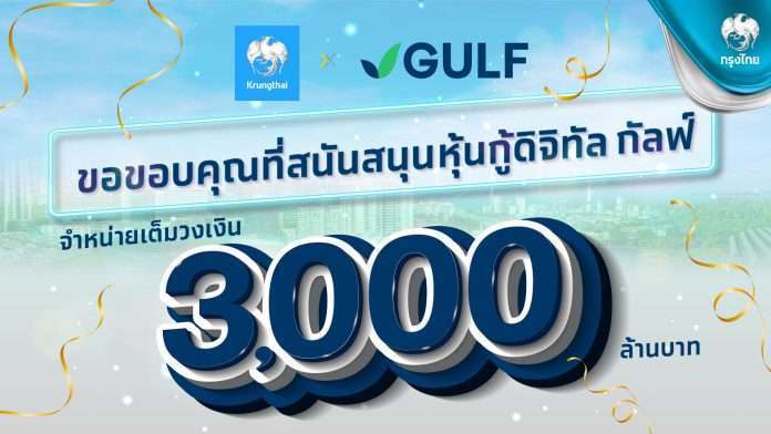 “การเสนอขายหุ้นกู้ดิจิทัล GULF ครั้งนี้ เป็นการต่อยอดจากการพัฒนาโครงสร้างพื้นฐานด้านดิจิทัลของธนาคาร ตอบโจทย์เป้าหมายการพัฒนาอย่างยั่งยืน (SDGs) ทั้งด้านการนำนวัตกรรมมาเพิ่มประสิทธิภาพ พัฒนายกระดับตลาดทุนไทย นำเสนอบริการที่สนับสนุนการเติบโตของเศรษฐกิจอย่างต่อเนื่อง ช่วยลดปัญหาสิ่งแวดล้อม เพราะเป็นผลิตภัณฑ์แบบไม่ต้องใช้เอกสาร ลดการเดินทางไปสาขา ทำรายการบนแอปฯ เป๋าตังได้ทันที ซึ่งเป็นช่องทางที่ประชาชนส่วนใหญ่คุ้นเคย มีผู้ใช้งานกว่า 40 ล้านคน ช่วยให้ประชาชนทุกกลุ่มเข้าถึงการลงทุนได้ทั่วถึง ลดปัญหาความเหลื่อมล้ำ มีระบบที่โปร่งใส ปลอดภัย สามารถตรวจสอบได้ทุกขั้นตอน โดยธนาคารพร้อมจับมือกับพันธมิตรทุกกลุ่ม เพื่อพัฒนาผลิตภัณฑ์และบริการที่ตอบโจทย์ความต้องการของลูกค้าเพื่อให้ชีวิตดีขึ้นอย่างทั่วถึงและยั่งยืน”