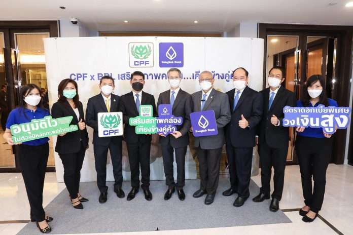 ธนาคารกรุงเทพ จำกัด (มหาชน) ร่วมกับ บริษัท เจริญโภคภัณฑ์อาหาร จำกัด (มหาชน) หรือ ซีพีเอฟ เปิดตัวความร่วมมือโครงการ “CPF x BBL เสริมสภาพคล่อง…เคียงข้างคู่ค้า” มอบสินเชื่อหมุนเวียนด้วยดอกเบี้ยพิเศษสำหรับคู่ค้าของซีพีเอฟ โดยมี นายจรัมพร โชติกเสถียร กรรมการบริหาร ธนาคารกรุงเทพ และ นายประสิทธิ์ บุญดวงประเสริฐ ประธานคณะผู้บริหาร ซีพีเอฟ ให้เกียรติเป็นประธานในงาน ณ อาคารซีพี ทาวเวอร์ สีลม