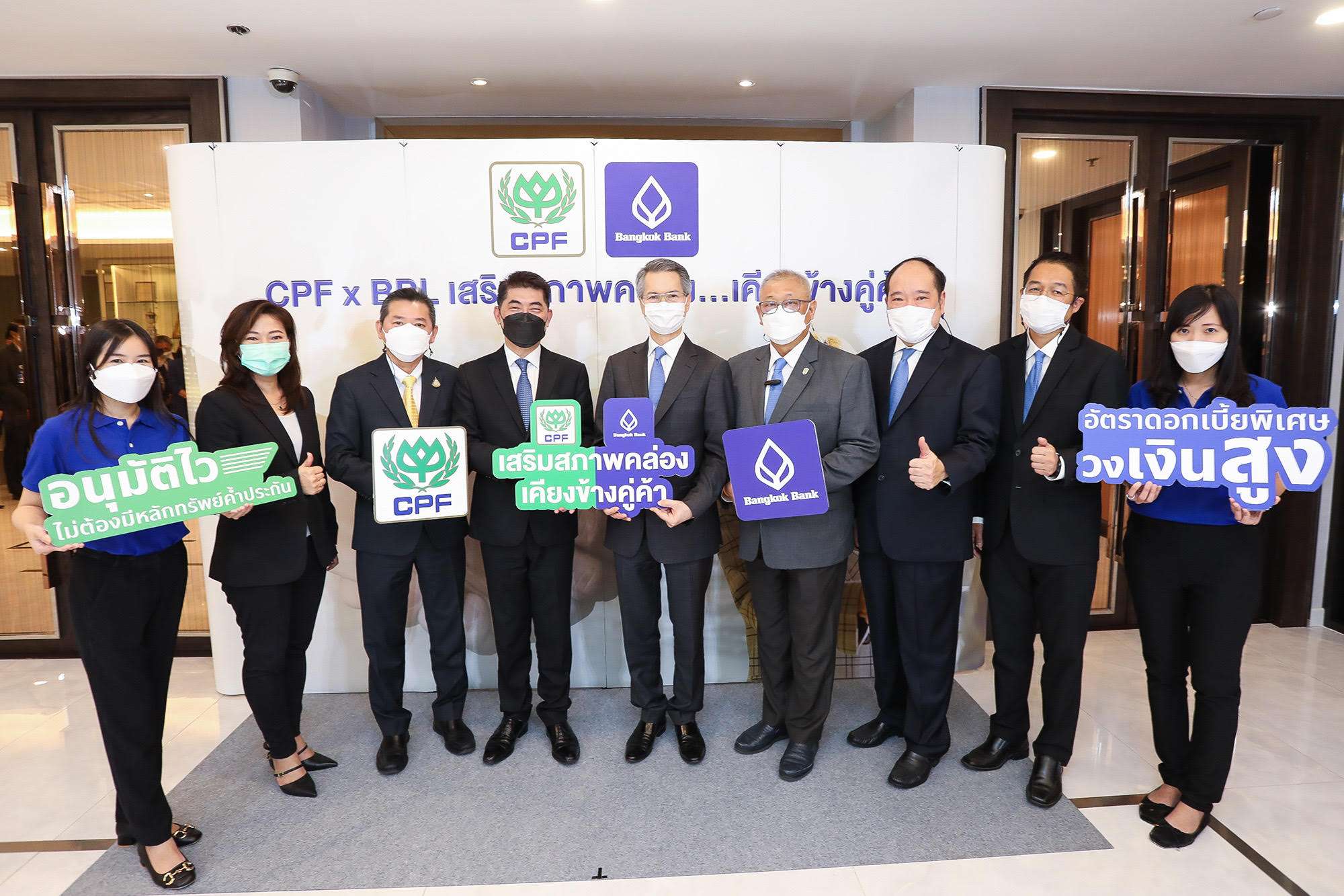 ด้านนายพิพัฒน์ อัสสมงคล ผู้ช่วยผู้จัดการใหญ่ ธนาคารกรุงเทพ กล่าวว่า ภายใต้ความร่วมมือดังกล่าวธนาคารได้ออกแบบสินเชื่อหมุนเวียนเพื่อช่วยเสริมสภาพคล่องให้ธุรกิจ ด้วยอัตราดอกเบี้ยพิเศษสำหรับคู่ค้าของ CPF ให้วงเงินสูง อนุมัติไว ไม่ต้องใช้หลักทรัพย์ค้ำประกัน ลูกค้าสามารถเบิกใช้วงเงินได้ง่าย ชำระคืนได้ทุกวัน และตรวจสอบวงเงินสินเชื่อผ่านออนไลน์ได้ตลอด 24 ชั่วโมง จึงจัดการให้สอดคล้องกับสภาพคล่องของธุรกิจได้อย่างมีประสิทธิภาพและเบาใจเรื่องภาระดอกเบี้ย