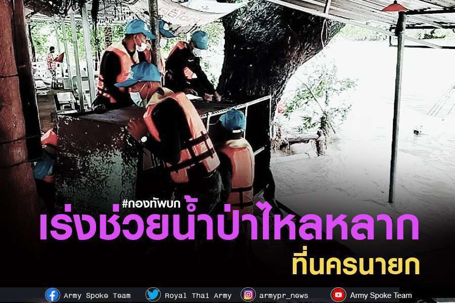 ทบ.ร่วมส่วนราชการ เร่งช่วยประชาชนจากน้ำป่าไหลหลาก จ.นครนายก