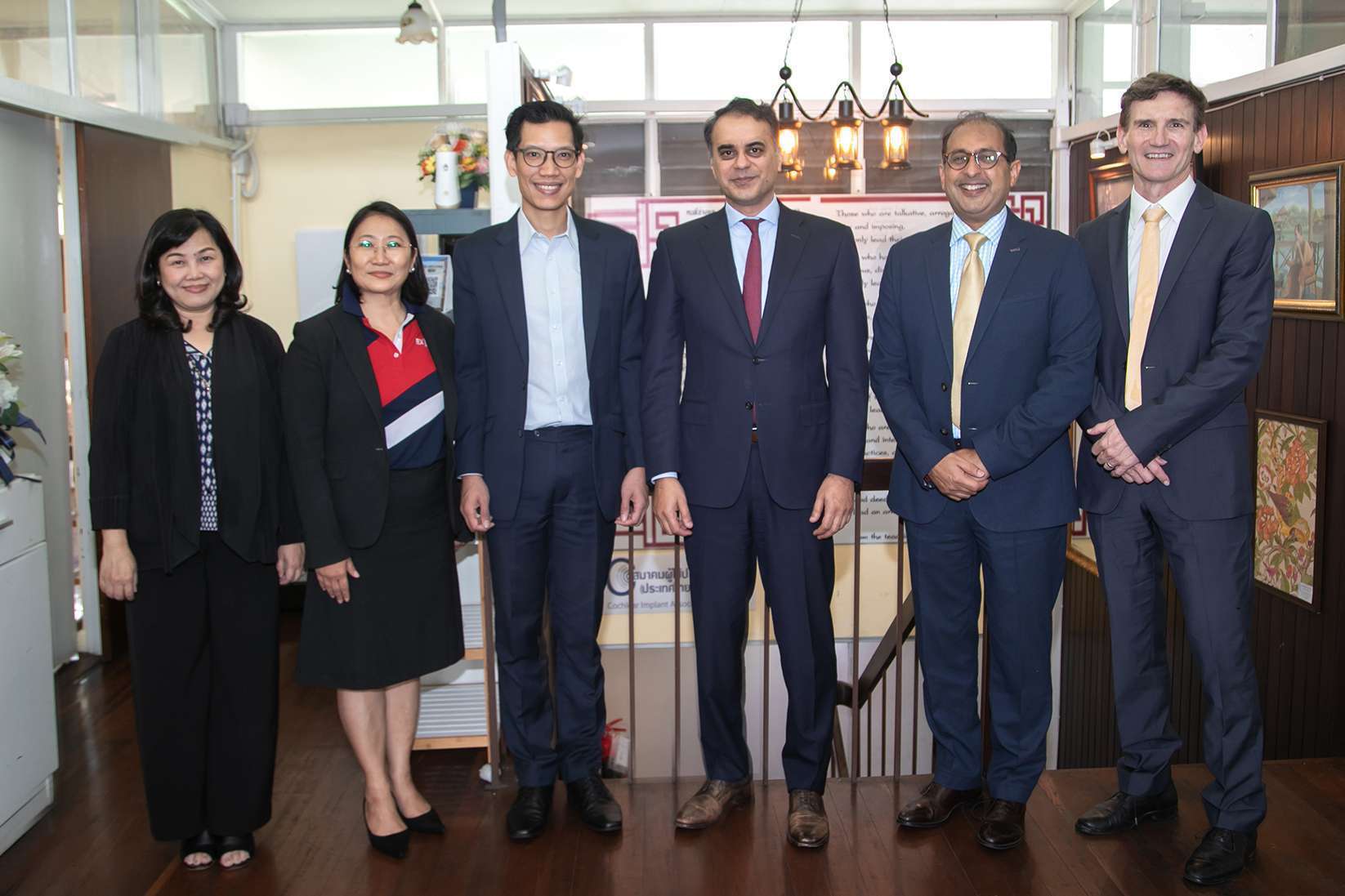 ดร.เบญจรงค์ สุวรรณคีรี (ที่ 3 จากซ้าย) รองกรรมการผู้จัดการ ธนาคารเพื่อการส่งออกและนำเข้าแห่งประเทศไทย (EXIM BANK) นางสาวดรัสวันต์ ชูวงษ์ (ที่ 2 จากซ้าย) ผู้ช่วยกรรมการผู้จัดการ EXIM BANK และนางวันเพ็ญ อรรชุนเดชะ (ซ้าย) ผู้ช่วยกรรมการผู้จัดการ EXIM BANK พบปะหารือกับนายอาเหม็ด เอ็ม ซาอิด (ที่ 3 จากขวา) รองประธานธนาคารพัฒนาเอเชีย (Asian Development Bank : ADB) นายอานุช เมธา (ที่ 2 จากขวา) ผู้อำนวยการสำนักงานผู้แทน ADB ประจำประเทศไทย และนายเจย์ รูพ (ขวา) รองผู้อำนวยการสำนักงานผู้แทน ADB ประจำประเทศไทย เพื่อหาแนวทางความร่วมมือในการพัฒนาโครงการ Green Financing ขับเคลื่อนการพัฒนาอย่างยั่งยืนในอาเซียน รวมถึงการจัดทำกรอบการระดมทุนอย่างยั่งยืน (Sustainable Financing Framework) สำหรับการออกพันธบัตรสนับสนุนโครงการเพื่อ