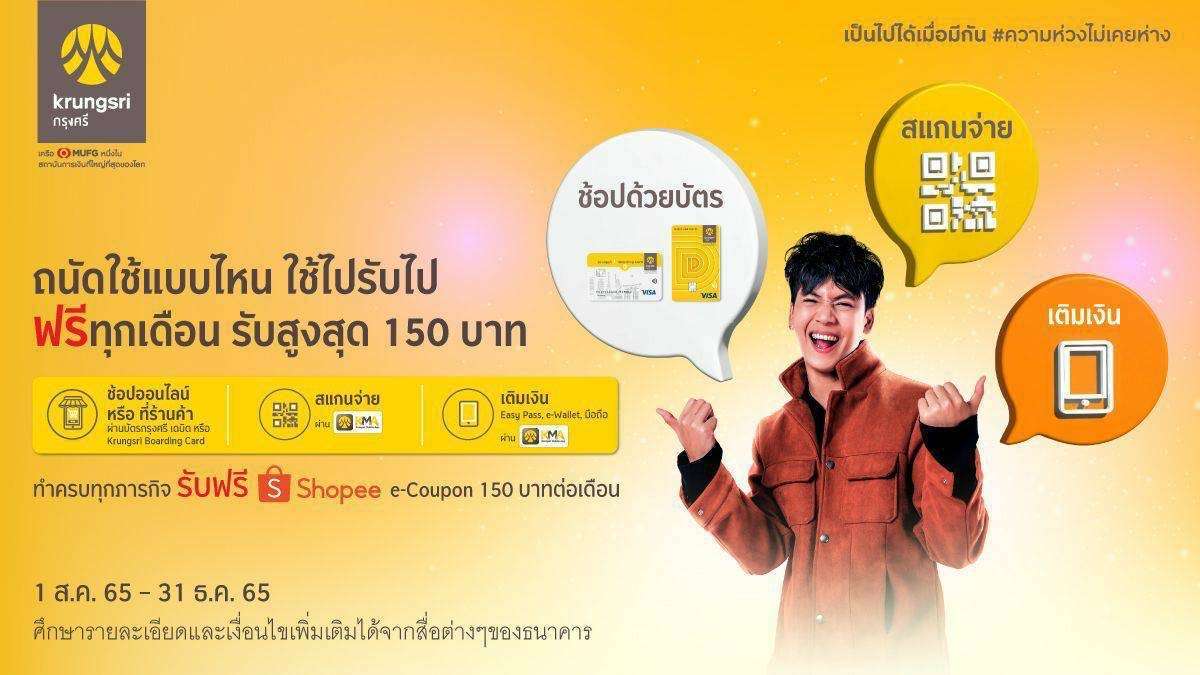 กรุงศรีชวนร่วมภารกิจ ถนัดใช้แบบไหน ใช้ไปรับไป ฟรีทุกเดือน รับ Shopee e-Coupon สูงสุด 150 บาท