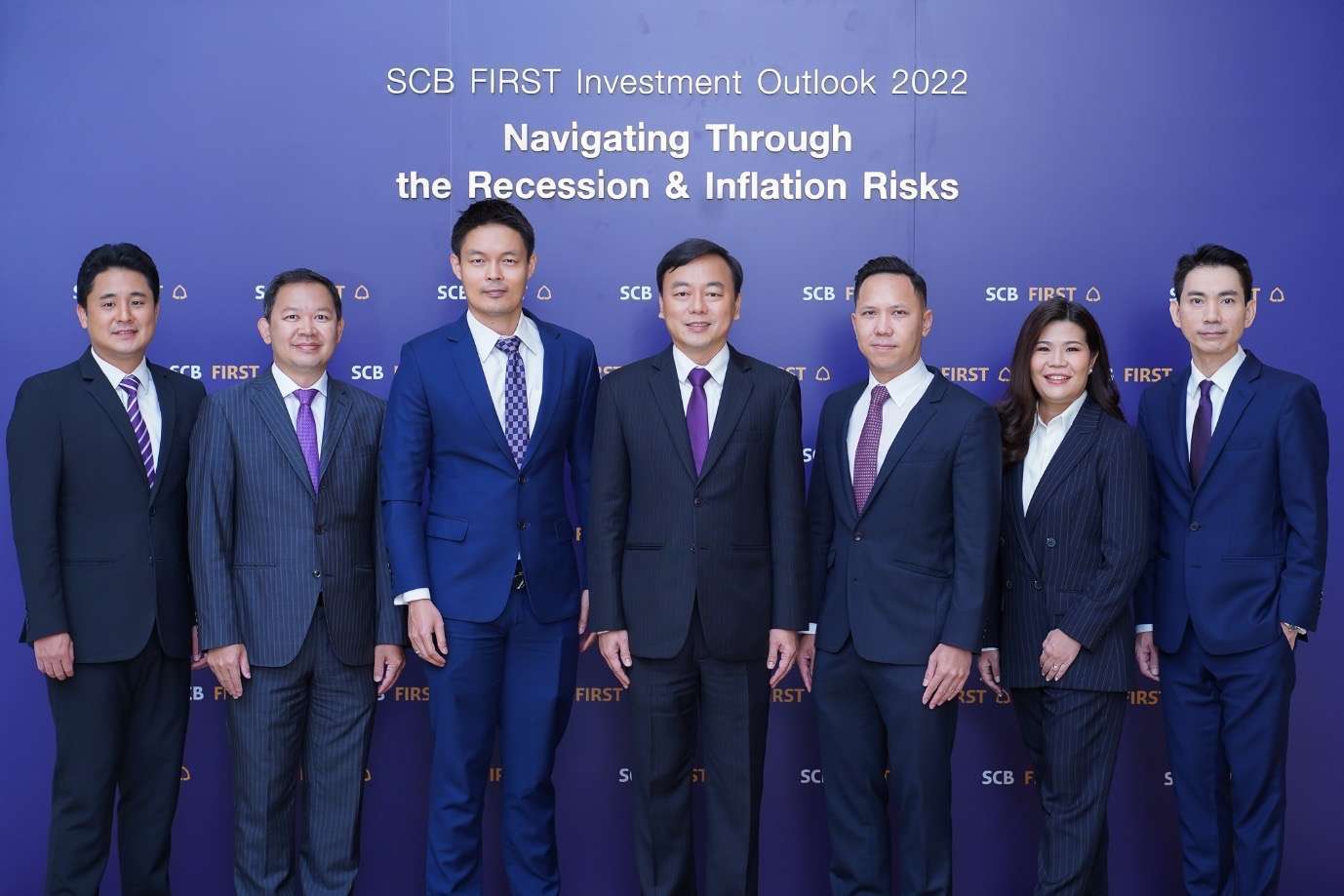 ดร.ยรรยง ไทยเจริญ (กลาง) รองผู้จัดการใหญ่อาวุโส ประธานเจ้าหน้าที่บริหาร กลุ่มธุรกิจเวลธ์ ธนาคารไทยพาณิชย์ เป็นประธานเปิดงานสัมมนา “ SCB First Investment Outlook 2022 : Navigating Through the Recession & Inflation Risks ” ให้แก่กลุ่มลูกค้า First โดยมี นายศรชัย สุเนต์ตา (ที่2จากซ้าย) ผู้ช่วยผู้จัดการใหญ่ ผู้บริหารสายงาน Investment Office and Product ธนาคารไทยพาณิชย์ นายสุกิจ อุมดมศิริกุล (ที่1จากขวา) กรรมการผู้จัดการ สายงานวิจัย บริษัทหลักทรัพย์ ไทยพาณิชย์ จำกัด นายธณาพล อิทธินิธิภัค (ที่3 จากซ้าย ) Director and Head of Thai Business , BlackRock และนายอาทิตย์ ทองเจริญ (ที่ 3 จากขวา) Head of Thailand Business, Schroders Investment Management (Singapore ) Ltd ร่วมบรรยายเจาะลึกเศรษฐกิจและการลงทุนในช่วงครึ่งหลังของปี 2022 พร้อมกลยุทธ์การลงทุนเพื่อเป็นเข็มทิศนำทางสู่ความมั่งคั่งในช่วงเสี่ยงภาวะเศรษฐกิจถดถอย และเงินเฟ้อที่ยังอยู่ในระดับสูง เมื่อเร็วๆนี้ ณ โรงแรม Park Hyatt Bangkok