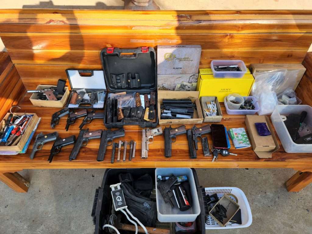 เมื่อวันที่ 1 ก.ย. พล.ต.ท.ต่อศักดิ์ สุขวิมล ผู้ช่วย ผบ.ตร.สั่งการ พล.ต.ต.ภูมินทร์ พุ่มพันธุ์ม่วง ผบก.ปพ. นำกำลังเจ้าหน้าที่ กก.วิเคราะห์ข่าวและเครื่องมือพิเศษ บก.ปพ. กระจายกำลังตรวจค้นพื้นที่เป้าหมายจำนวน 4 จุด ในพื้นที่ อ.คง จ.นครราชสีมา เพื่อกวาดล้างจับกุมแก๊งลักลอบค้าอาวุธปืนผ่านเฟสบุ๊ก โดยสามารถจับกุมตัวผู้กระทำผิดได้ จำนวน 1 ราย คือ นายศุภณัฏฐ์ พิชัยลักษณ์ อายุ 43 ปี พร้อมของกลางยาบ้า 2 เม็ด เครื่องกระสุนปืน ขนาด.22 จำนวน 1 นัด สิ่งเทียมอาวุธปืน 4 กระบอก และ อุปกรณ์ส่วนควบอาวุธปืนอีกหลายรายการ