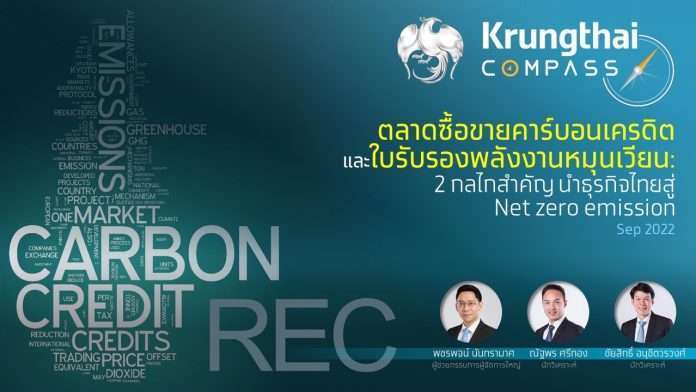 ศูนย์วิจัย Krungthai COMPASS ชี้ธุรกิจแนวหน้าด้าน ESG ใช้การซื้อขายคาร์บอนเครดิตและใบรับรองพลังงานหมุนเวียน เป็นเครื่องมือสำคัญในการก้าวสู่ Net Zero Emission และเป้าหมายการใช้พลังงานหมุนเวียน 100% คาดแนวโน้มตลาดโลกและไทยเติบโตสูง แนะผู้ประกอบการเร่งเตรียมความพร้อม ส่วนภาครัฐควรมีมาตรการส่งเสริมอย่างต่อเนื่อง