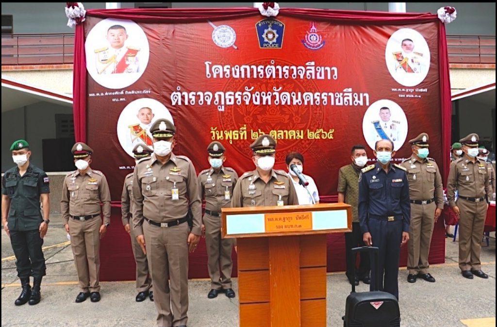 วันที่ 26 ตุลาคม 2565 เวลา 09.30 น. ที่บริเวณลานหน้าอาคาร ตำรวจภูธรจังหวัดนครราชสีมา พล.ต.ท.สมประสงค์ เย็นท้วม ผบช.ภ.3 มอบหมายให้ พล.ต.ต.ฐากูร นัทธีศรี รอง ผบช.ภ.3 เป็นประธานในพิธีเปิดโครงการตำรวจสีขาว ตำรวจภูธรจังหวัดนครราชสีมา ตามมาตรการควบคุม กำกับดูแลความประพฤติของข้าราชการตำรวจ พร้อมด้วย พล.ต.ต.อิทธิพล นาคคำ ผบก.ภ.จว.นครราชสีมา, พ.ต.อ.พิษณุ วัตถุ รอง ผบก.ภ.จว.นครราชสีมา และข้าราชการตำรวจในสังกัด ภ.จว.นครราชสีมา, กก.สส.ภ.จว.นครราชสีมา และ สภ.เมืองนครราชสีมา