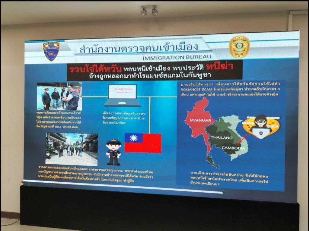 (4.) รวบโจไต้หวัน หลบหนีเข้าเมือง พบประวัติหนีคดีฆ่า อ้างถูกหลอกมาทำโรแมนซ์สแกมในกัมพูชา เจ้าหน้าที่ตำรวจ กก.1 บก.สส.สตม. จับกุมนายเฉิน (นามสมมติ) อายุ 17 ปี สัญชาติไต้หวัน โดยกล่าวหา ว่าเป็นคนต่างด้าวเดินทางเข้ามาและอยู่ในราชอาณาจักรโดยไม่ได้รับอนุญาต เนื่องจากไม่มีหนังสือเดินทางแสดง และเมื่อตรวจสอบข้อมูลในระบบเทคโนโลยีสารสนเทศ ตม. ผลการตรวจสอบไม่พบข้อมูลการเดินทางเข้ามาในราชอาณาจักรแต่อย่างใด จากการสอบถามผู้ต้องหาให้การว่าตนเองได้ถูกเพื่อนชาวไต้หวันชักชวนให้ไปทำ Romancs scam ในประเทศก้มพูชา โดยทำมาแล้วเป็นเวลา 3 เดือน แต่หาลูกค้าไม่ได้ทางนายจ้างจึงจะขายตนเองให้กับนายจ้างอื่น ตนเองเกรงว่าจะเกิดอันตราย จึงได้หลบหนีนายจ้างและลักลอบหลบหนีเข้ามาในประเทศไทยทางช่องทางธรรมชาติไม่ทราบว่าในพื้นที่จังหวัดใด เมื่อวันที่ 29 ก.ค.2565 เพื่อต้องการจะเดินทางต่อไปยังประเทศเมียนมา และจากการตรวจสอบกับหัวหน้าแผนกประสานงานอาชญากรรม ประจำประเทศไทย กองบัญชาการตำรวจสืบสวนอาชญากรรมสำนักงานตำรวจแห่งชาติไต้หวันแจ้งว่า นายเฉิน เป็นผู้ต้องหาที่ทางการไต้หวันต้องการตัวโดยในช่วงกลางปี พ.ศ.2564 ได้ร่วมกับพวกรวม15 คน รุมทำร้ายผู้เสียหายเพื่อนร่วมชาติ โดยนายเฉินใช้ไม้ตีผู้เสียหายจนถึงแก่ความตาย ทางการไต้หวันจึงได้ออกหมายจับในความผิดฐานฆ่าผู้อื่น เจ้าหน้าที่ชุดจับกุมจึงได้แจ้งข้อกล่าวหาและนำตัวส่งพนักงานสอบสวนดำเนินคดีตามกฎหมาย