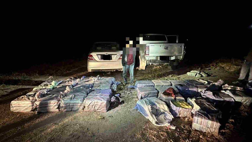 กระทั่งเวลา 21.30 น. ของวันที่ 12 ม.ค.66 สามารถสกัดกั้นรถยนต์เป้าหมายทั้ง 3 คัน ไว้ได้ หลังพบวิ่งตามถนนเลียบคลองชลประทาน ทิศทางมุ่งหน้า อ.บางปะหัน จว.พระนครศรีอยุธยา แต่ระหว่างตรวจค้นจับกุม ผู้ขับขี่ รถยนต์ TOYOTA สีดำ หมายเลขทะเบียน ขร 92XX เชียงใหม่ ได้อาศัยจังหวะเร่งเครื่องยนต์ขับหลบหนีไปได้ เบื้องต้น ตรวจยึดยาบ้า 604 มัด รวมจำนวน 1,208,000 เม็ด และ ยึดรถกระบะ หมายเลขทะเบียน ผข 76XX พิษณุโลก (ใช้ขับนำทาง/สำรวจด่านตรวจ), รถบรรทุก หมายเลขทะเบียน 1ฒท 8296 กรุงเทพมหานคร (ยึดได้ที่หน้าร้านหน้าสะดวกซื้อ ต.หัวไผ่ อ.มหาราช จว.พระนครศรีอยุธยา ผู้ต้องหาหลบหนี),โทรศัพท์มือถือ 2 เครื่อง พร้อมแจ้งข้อหา “จำหน่ายยาเสพติดให้โทษประเภท 1 (เมทแอมเฟตามีนหรือยาบ้า) โดยผิดกฎหมาย อันเป็นการกระทำให้เกิดผลกระทบต่อความมั่นคงของรัฐ หรือความปลอดภัยของประชาชนทั่วไป และก่อให้เกิดการแพร่กระจายในกลุ่มประชาชน”