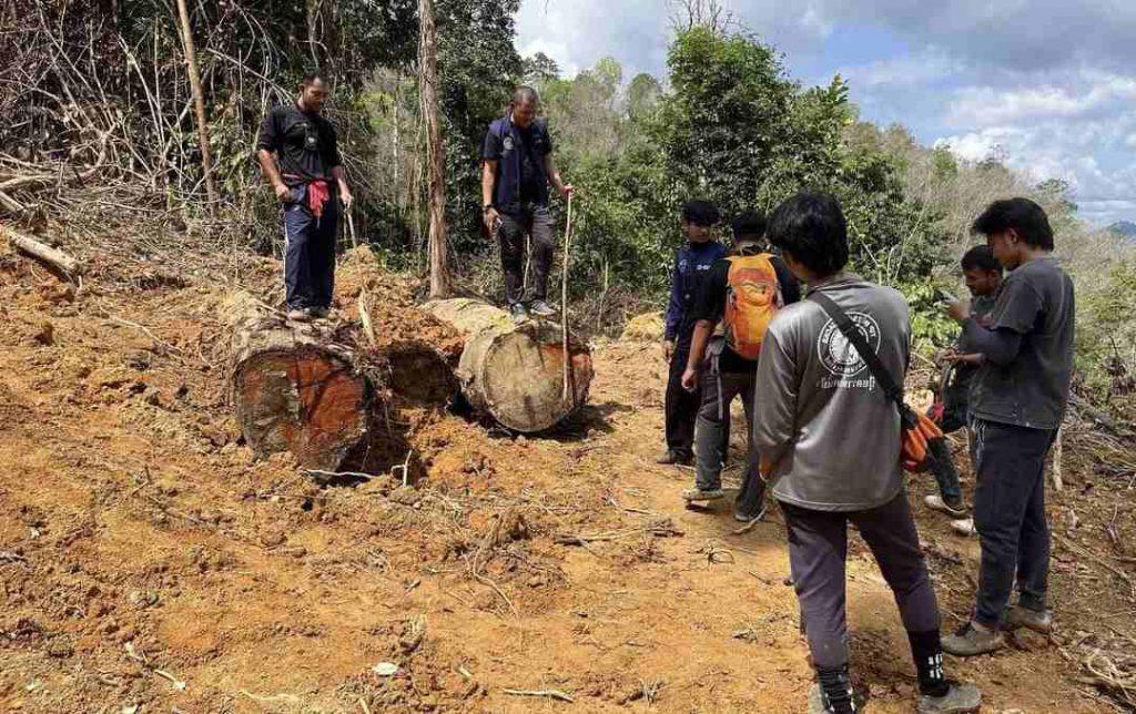 วันที่ 16 ม.ค.66 ร.ต.ท.ณัฐีร์ ปัญจสิริวิทย์ รอง.ผบ.ร้อย ฉก.ตชด.445 ได้รับแจ้งว่า มีการลักลอบตัดโค่นไม้หวงห้ามขนาดใหญ่หลายต้นและบุกรุกทำลายพื้นที่ป่าเป็นวงกว้างในพื้นที่ ต.อัยเยอร์เวง อ.เบตง จ.ยะลา ซึ่งไม้บางส่วนถูกเคลื่อนย้ายออกไปแล้ว บางส่วนยังอยู่ในที่เกิดเหตุ และบางส่วนกองอยู่ข้างลำคลอง รอการเคลื่อนย้าย จึงรายงานให้ พ.ต.ท.อรรถพล จินตาคม ผบ.ร้อย ตชด.445 และ ร.ต.อ.มาตุภูมิ ธรรเนียม ผบ.ร้อย ฉก.ตชด.445 พร้อมประสานนายพิชัย แก้วจำรัส ปลัดอำเภอเบตง นำกำลังเจ้าหน้าที่ ตชด.445, ร้อย ฉก.ตชด.444, ร้อย ฉก.ตชด.445, ตำรวจ สภ.อัยเยอร์เวง, อส.อำเภอเบตง และเจ้าหน้าที่ป่าไม้ยะลา4 บ่อน้ำร้อนจันทรัตน์ เข้าตรวจสอบ