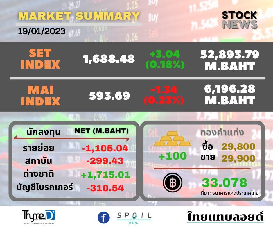 SET ปิดวันนี้ที่ 1,688.48 จุด เพิ่มขึ้น 3.04 จุด (0.18%) มูลค่าการซื้อขาย 52,943.53 ล้านบาท