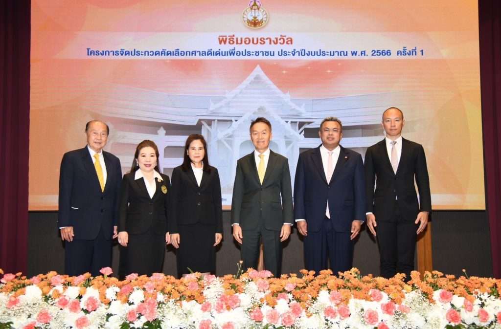 วันที่ 23 มีนาคม 2566 นายโชติวัฒน์ เหลืองประเสริฐ ประธานศาลฎีกา เป็นประธานใน พิธีมอบรางวัล โครงการจัดประกวดคัดเลือกศาลดีเด่นเพื่อประชาชน ประจาปีงบประมาณ พ.ศ. 2566 ครั้งที่ 1 โดยมีนายธีรศักด์ิ เงยวิจิตร เลขาธิการสานักงานศาลยุติธรรม เป็นผู้กล่าวรายงาน ณ ห้องประชุม สัญญาธรรมศักดิ์ สถาบันพัฒนาข้าราชการฝ่ายตุลาการศาลยุติธรรม ถนนรัชดาภิเษก เขตจตุจักร กรุงเทพมหานครโครงการจัดประกวดคัดเลือกศาลดีเด่นเพื่อประชาชน จัดขึ้นเพื่อส่งเสริมและสนับสนุนศาลยุติธรรม ทั่วประเทศให้ตระหนักถึงความสาคัญของการบริหารจัดการคดีอย่างมีประสิทธิภาพ สามารถดาเนินการ แล้วเสร็จภายในมาตรฐานระยะเวลาที่กาหนด พัฒนาระบบงานให้ประชาชนเข้าถึงบริการของศาลยุติธรรม ได้อย่างสะดวก รวดเร็ว และประหยัดในทุกมิติภายใต้ความเสมอภาคและเท่าเทียม ยึดถือความต้องการ ของประชาชนเป็นศูนย์กลาง