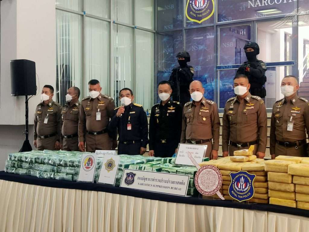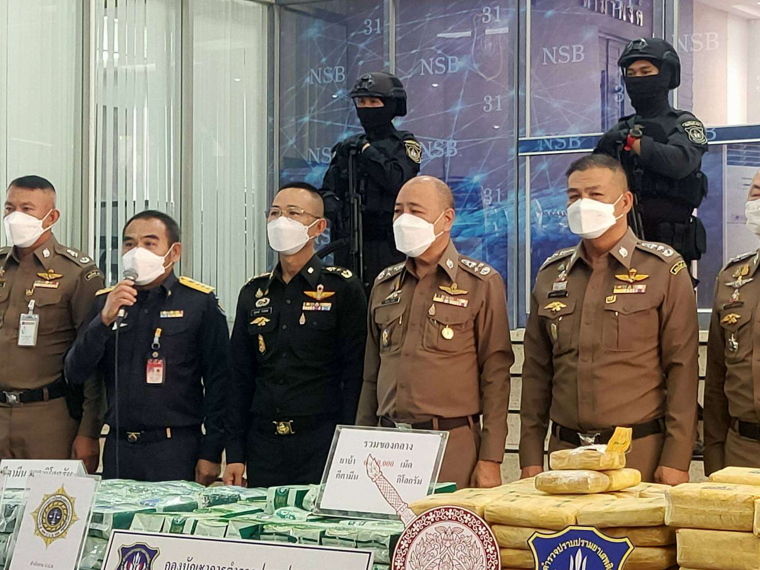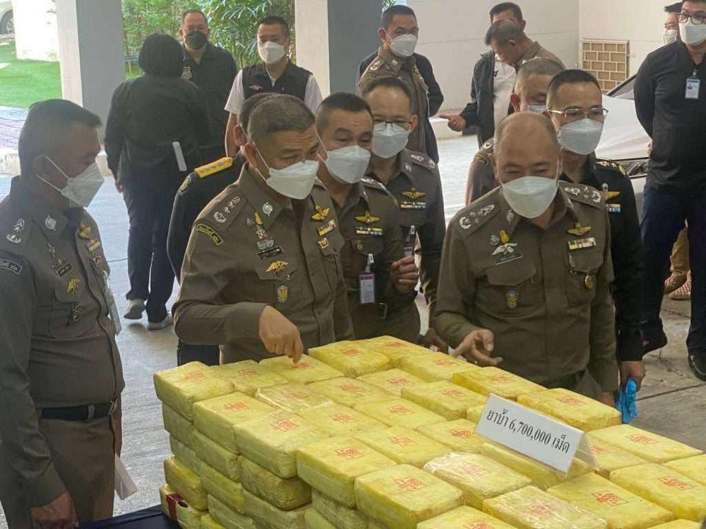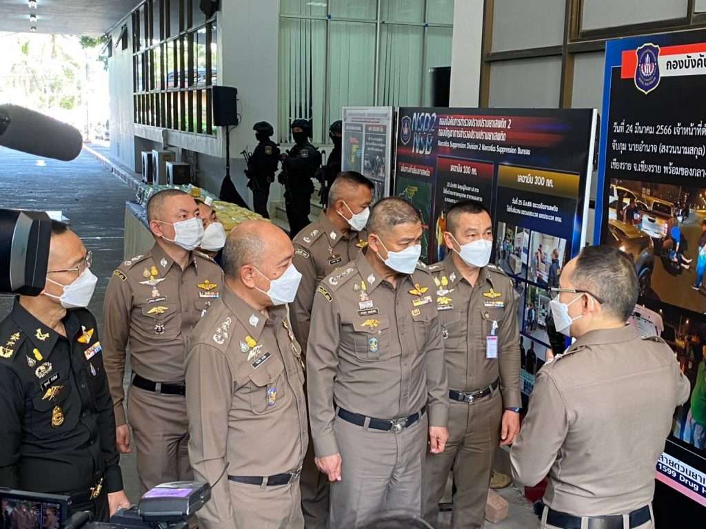 เมื่อวันที่ 28 มี.ค.66 เวลาประมาณ 10.00 น. พล.ต.อ.ชินภัทร สารสิน รอง ผบ.ตร./ผอ.ศอ.ปส.ตร. พร้อมด้วย พล.ต.ท.ประจวบ วงศ์สุข ผู้ช่วย ผบ.ตร./รอง ผอ.ศอ.ปส.ตร., พล.ต.ท.สรายุทธ สงวนโภคัย ผบช.ปส., พล.ต.ต.ธนรัชน์ สอนกล้า ผบก.ปส.2, พล.ต.ต.คมสิทธิ์ รังไสย์ ผบก.ปส.3 เจ้าหน้าที่ ป.ป.ส. และ กอ.รมน. ร่วมแถลงผลการจับกุมเครือข่ายยาเสพติด ภายใต้การสั่งการอย่างเข้มข้นให้เจ้าหน้าที่ตำรวจ (NSB) เดินหน้าทำลายเครือข่ายยาเสพติดรายใหญ่ และรายย่อย ตามนโยบายเร่งด่วนของ พล.ต.อ.ดำรงศักดิ์ กิตติประภัสร์ ผบ.ตร ซึ่งจะพบว่าสถานการณ์ยาเสพติดขณะนี้เครือข่ายมีความพยายามอย่างหนักในการลักลอบลำเลียงยาเสพติดจำนวนมาก ล่าสุดตำรวจ ปส.(NSB) สามารถจับกุมได้ 3 เครือข่าย พร้อมของกลาง ยาบ้า 6.7 ล้านเม็ด และคีตามีน 400 กก.