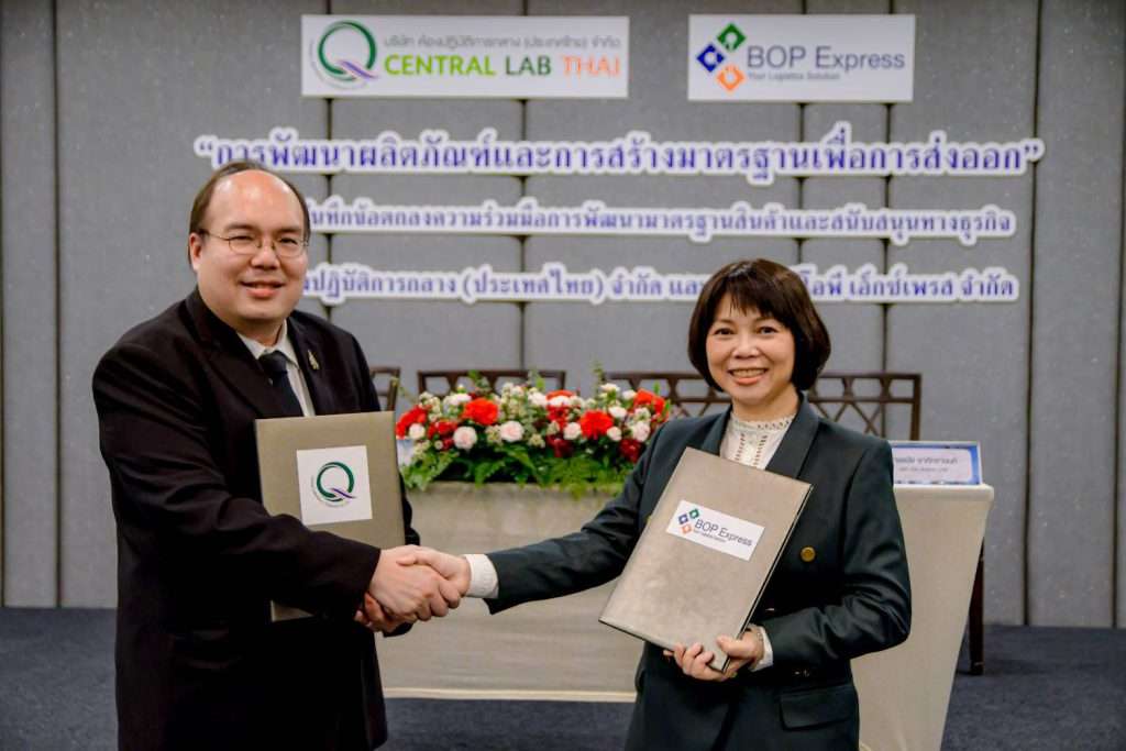 นายชาคริต เทียบเธียรรัตน์ กรรมการผู้อำนวยการ บริษัท ห้องปฏิบัติการกลาง (ประเทศไทย) จำกัด หรือ เซ็นทรัลแล็บไทย กล่าวว่า ได้ลงนามบันทึกข้อตกลงความร่วมมือการพัฒนามาตรฐานสินค้าและการสนับสนุนทางธุรกิจ ระหว่างเซ็นทรัลแล็บไทยกับบริษัท บีโอพีเอ็กซ์เพรสจำกัด พร้อมเปิดจุดรับตัวอย่างของสำนักงานสาขาฉะเชิงเทรา ในพื้นที่อ.ศรีราชา โดยมี นายสมชาติ ศรีเรือง ผอ.สำนักงานสาขาฉะเชิงเทรา เซ็นทรัลแล็บไทย นางภษิมา ชาภักจานนท์ ประธานกรรมการ บริษัท บีโอพีเอ็กซ์เพรสจำกัด นายธนัช ชาภักจานนท์ กรรมการบริษัท บีโอพี เอ็กซ์เพรส จำกัด นายวีรชาติ พุทธรักษา ผอ.สำนักปฏิบัติการ ท่าเรือแหลมฉบัง และนายวรจักร สถาพรภิญโญ นายอำเภอศรีราชา ร่วมเป็นสักขีพยาน