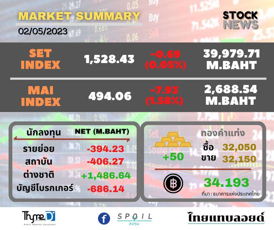 SET ปิดวันนี้ที่ 1,528.43 จุด ลดลง 0.69 จุด (-0.05%) มูลค่าการซื้อขาย 39,979.71 ล้านบาท