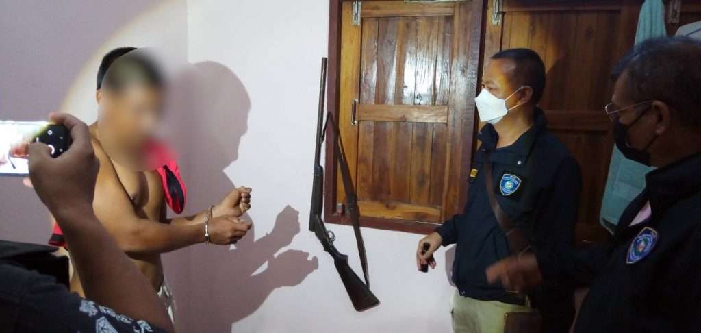 โดย ผบก.สอท.1 ได้สั่งการให้ พ.ต.อ.กฤษดา มานะวงศ์สกุล ผกก.4 บก.สอท.1 สืบสวนจับกุมอย่างเร่งด่วนเพื่อสร้างความเชื่อมั่นและความปลอดภัยในชีวิตและทรัพย์สินให้กับประชาชน ต่อมาวันนี้ 4 พฤษภาคม 2565 เจ้าหน้าที่ตำรวจ กก.4 บก.สอท.1 โดย พ.ต.ต.ครรชิต จันท่าม่วง สว.สืบสวนฯ พร้อมฝ่ายสืบสวน นำหมายค้นศาลจังหวัดจันทบุรี เข้าตรวจค้นที่บ้านของนายมอส เมื่อเดินทางไปถึงพบว่าบ้านหลังดังกล่าวเป็นบ้านชั้นเดียวอยู่ติดเชิงเขา จึงได้กระจายกำลังเข้าปิดล้อมและเรียกให้นายมอสฯ ออกมาแสดงตัว โดยภายหลังการเจรจาอยู่นาน นายมอสฯ ได้ยินยอมออกมา โดยภายหลังการเจรจาอยู่นาน นายมอสฯ ได้ยินยอมออกมา เจ้าหน้าที่ตำรวจจึงได้แสดงหมายค้นและขอให้นายมอสฯ นำตรวจค้นภายในบ้าน ผลการตรวจค้นพบของกลางประกอบด้วย อาวุธปืนลูกซองยาว ไม่มีทะเบียน จำนวน 1 กระบอก บรรจุกระสุนพร้อมยิงแขวนอยู่ภายในห้องนอน และกระสุนปืนลูกซอง รวม 3 นัด