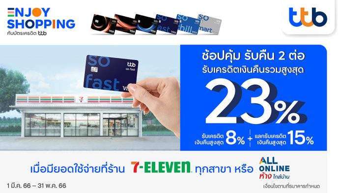 ช้อปคุ้ม รับคืน 2 ต่อ กับบัตรเครดิต ttb ที่ 7-Eleven รับเครดิตเงินคืนรวม