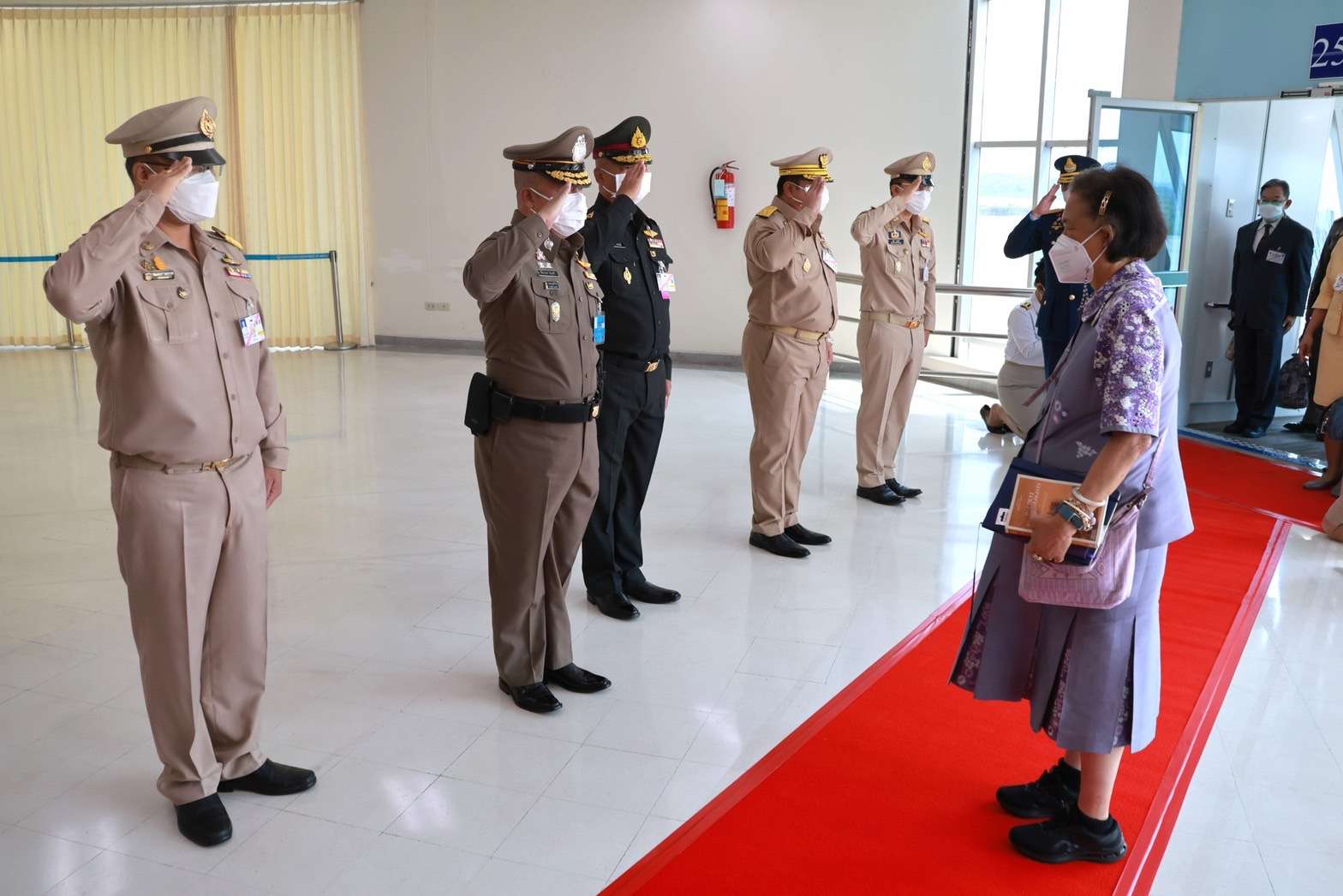 ในการนี้ พลตำรวจโท อัคราเดช พิมลศรี ผู้บัญชาการตำรวจภูธรภาค 6 พร้อมด้วย นางภคมน พิมลศรี ประธานชมรมแม่บ้านตำรวจภูธรภาค 6,พล.ต.ต.วรวัฒน์ มะลิ รองผู้บัญชาการตำรวจภูธรภาค 6,พล.ต.ต.ธวัช วงศ์สง่า ผู้บังคับการตำรวจภูธรจังหวัดพิษณุโลก,และหัวหน้าส่วนราชการ, ข้าราชกาตำรวจ,ทหาร,ประชาชน เฝ้ารับ-ส่งเสด็จฯ