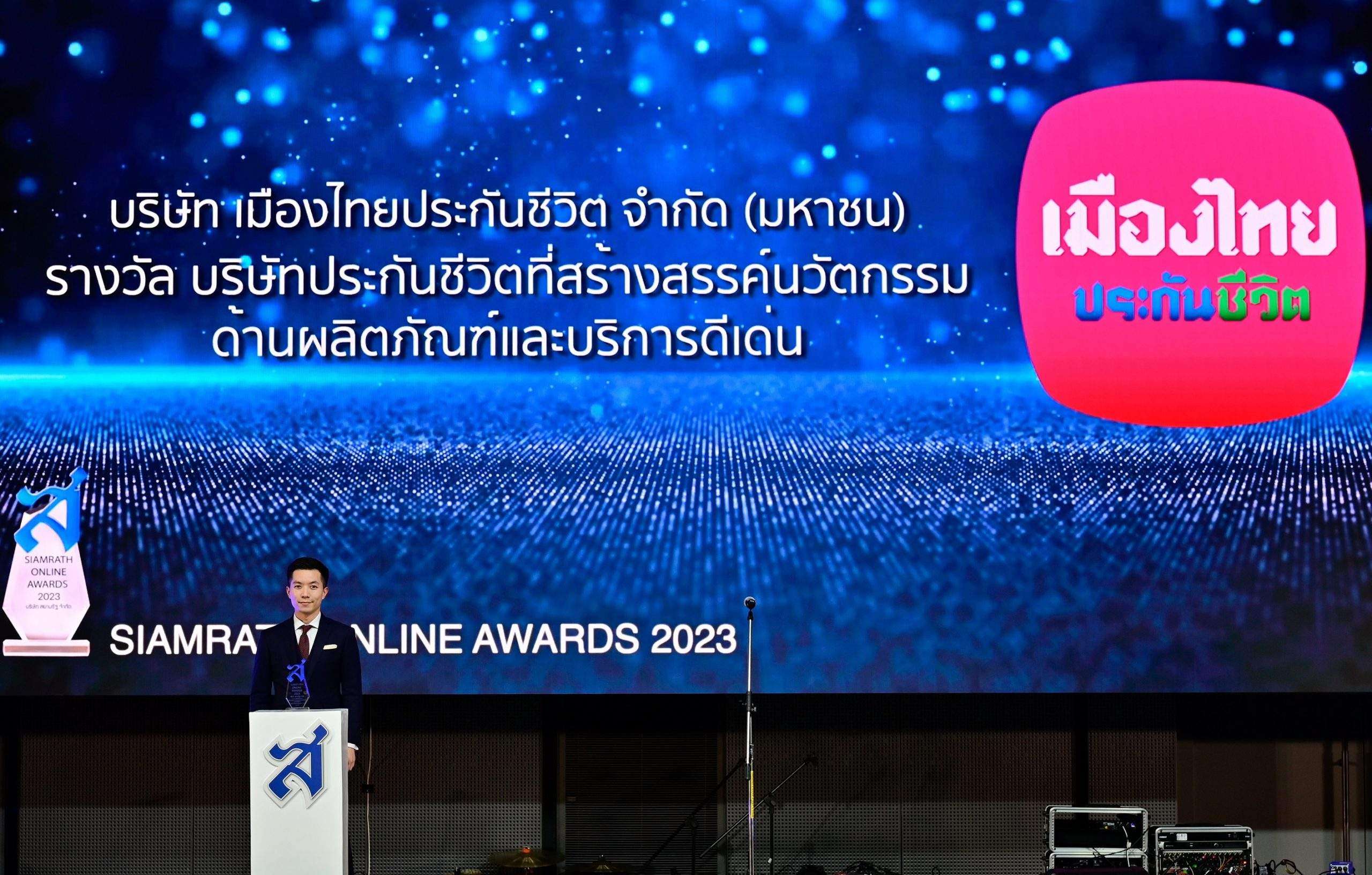 นายปาณัท สุทธินนท์ รองกรรมการผู้จัดการ บริษัท เมืองไทยประกันชีวิต จำกัด (มหาชน) ผู้แทนบริษัทฯ รับรางวัล “ประกันชีวิตที่สร้างสรรค์นวัตกรรมด้านผลิตภัณฑ์และบริการดีเด่น” ต่อเนื่องเป็นปีที่ 3 จากงาน มอบรางวัล SIAMRATH ONLINE AWARD 2023 รางวัลดังกล่าวถือเป็นรางวัลอันทรงเกียรติ ที่ตอกย้ำถึงการเป็นบริษัทประกันชีวิตชั้นนำ ที่ให้ความสำคัญกับการพัฒนาด้านนวัตกรรมผลิตภัณฑ์ประกันชีวิตและสุขภาพ รวมถึงการให้บริการอย่างต่อเนื่อง ทั้งนี้ รางวัลดังกล่าวมาจากการรวบรวมข้อมูลจากประชาชนที่มีต่อหน่วยงานและแบรนด์ต่างๆ ตลอดระยะเวลา 1 ปีที่ผ่านมา โดยใช้ฐานอ้างอิงข้อมูลจาก Platform BRAND 24 และ Google Trend เพื่อให้รางวัลดังกล่าวเป็นรางวัลอันทรงเกียรติอย่างแท้จริง ส่งผลให้เมืองไทยประกันชีวิตได้รับรางวัลอันทรงเกียรติในครั้งนี้ งานดังกล่าวจัดขึ้น ณ อาคาร TRUE DIGITAL PARK