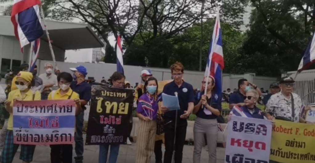 “กลุ่มศปปส.”บุกยื่นหนังสือสถานทูตอเมริกาฯต้านนโยบายพรรคก้าวไกล
