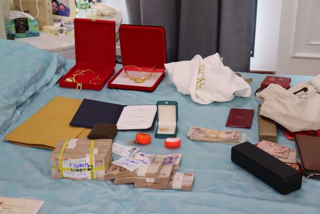 จุดที่น่าสนใจคือการตรวจค้นบ้านหรู ย่านประเวศ ซึ่งมีด้วยกัน 5 เป้าหมาย ลักษณะเป็นบ้านเดี่ยวสองชั้น เนื้อที่กว่า 150 ตร.วา แต่ละหลังมูลค่า 35-60 ล้านบาท ก่อนจับกุม นายเซาเซียน ซู อายุ 31 ปี และนางคี ยิ ยี อายุ 25 ปี ผู้ต้องหาชาวจีน ตามหมายจับศาลอาญาที่ 1665-66/2566 ลงวันที่ 26 พ.ค.2566 ในความผิดฐานร่วมกันฉ้อโกงประชาชน และร่วมกันฟอกเงิน พร้อมตรวจยึดเงินสดกว่า 1.5 ล้านบาท โฉนดที่ดินบ้านจัดสรร มูลค่ากว่า 60 ล้านบาท, หนังสือกรรมสิทธิ์ห้องชุดคอนโดหรูย่านสุขุมวิท 4 ห้อง มูลค่า 128 ล้านบาท, ตุ๊กตาแบร์บริค 14 ตัว โทรศัพท์มือถือ ไอโฟน 6 เครื่อง ไอแพค คอมพิวเตอร์แมคบุ๊ค กระเป๋าแบรนด์เนม อาทิ แอร์เมส,ซาแนล เป็นต้น