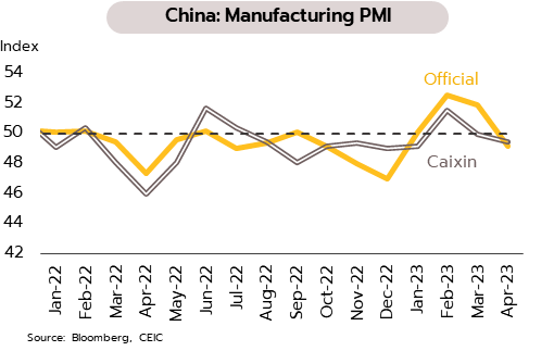 เศรษฐกิจจีนมีสัญญาณการฟื้นในรูปแบบตัว K (K-Shaped Recovery) ซึ่งเป็นลักษณะการฟื้นตัวที่แตกต่างกัน 2 กลุ่ม กลุ่มแรกฟื้นตัวกลับมาได้เร็ว เช่น การบริโภค การท่องเที่ยว และกิจกรรมในภาคบริการ ส่วนกลุ่มที่ 2 การฟื้นตัวช้าหรือยังคงอ่อนแอ สะท้อนจากดัชนี PMI ภาคอุตสาหกรรมที่เข้าสู่แดนหดตัวในเดือนเมษายน กำไรภาคอุตสาหกรรมร่วงลงติดต่อกัน 4 เดือน การลงทุนในสินทรัพย์ถาวรชะลอลง และการลงทุนภาคอสังหาริมทรัพย์หดตัวต่อเนื่อง รวมทั้งภาคส่งออกที่เติบโตชะลอลง ล่าสุดยังมีประเด็นความขัดแย้งระหว่างจีนและสหรัฐ ซึ่งอาจส่งผลต่อห่วงโซ่อุปทานด้านเทคโนโลยีของจีนและโลกในระยะ