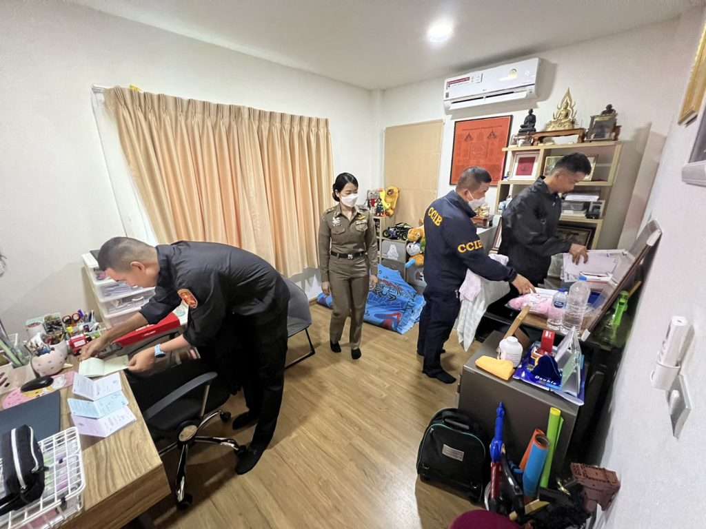 ค้น เป้าหมายจำนวน 2 จุด ในจังหวัด ชลบุรี และกรุงเทพมหานคร เพื่อหาพยานหลักฐานมาใช้ในการยืนยันความผิด