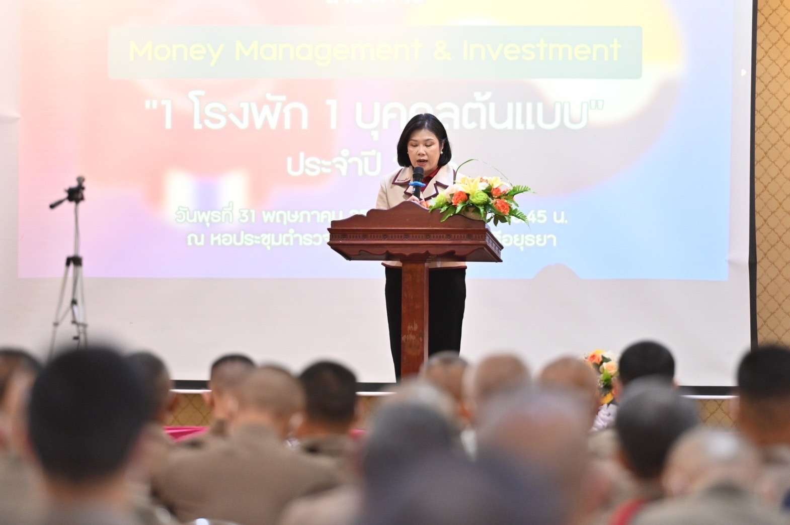 นายกสมาคมแม่บ้านตำรวจเปิดการอบรมโครงการ Money Management and Investment ให้กับข้าราชการตำรวจภูธรจังหวัดพระนครศรีอยุธยา เพื่อให้ความรู้เกี่ยวกับวางแผนทางการเงิน และการบริหารหนี้อย่างถูกวิธี