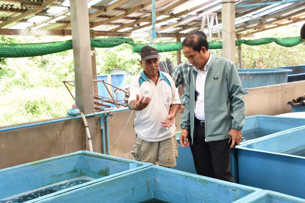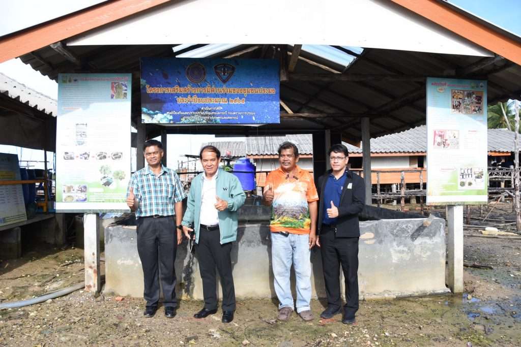 นายเอนก บำรุงกิจ รองผอ.สำนักงานการวิจัยแห่งชาติ (วช.) กระทรวงการอุดมศึกษา วิทยาศาสตร์ วิจัยและนวัตกรรม(อว.)นำคณะลงพื้นที่เยี่ยมชมผลสำเร็จของโครงการ “ส่งเสริมอาชีพการเพาะเลี้ยงสาหร่ายพวงองุ่นแบบอินทรีย์ เพื่อสร้างอาชีพทางเลือกให้กับชุมชนชายฝั่ง”
