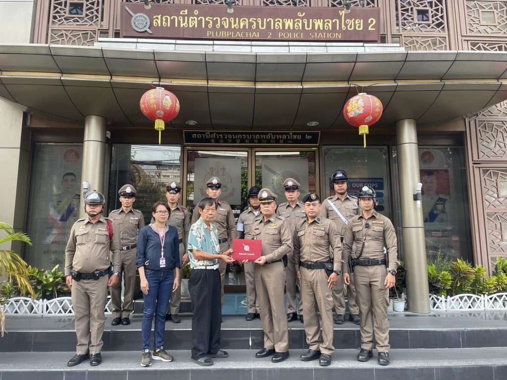 ตำรวจสน.พลับพลาไชย2 มอบประกาศเกียรติคุณ ให้พลเมืองดี หลังพบ กระเป๋าสตางค์ นักท่องเที่ยวชาวสิงคโปร์ อยู่กลางถนนเยาวราช