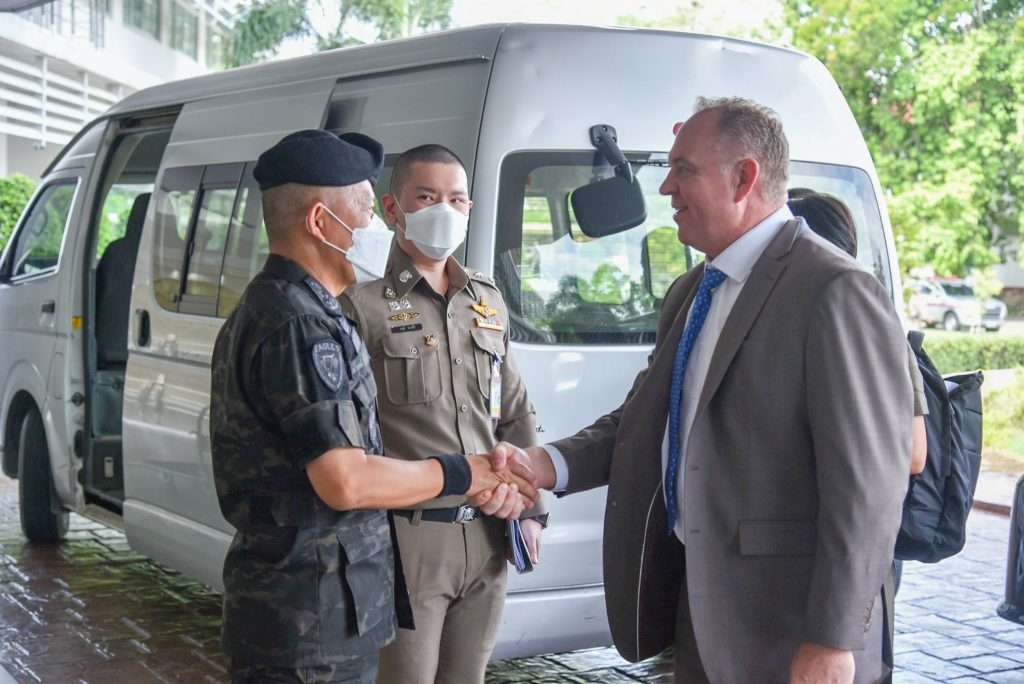 โดยมี Mr.Danial Lamm เจ้าหน้าที่ฝ่ายความร่วมมือด้านการบังคับใช้กฎหมาย และยาเสพติด สถานเอกอัครราชฑูตสหรัฐอเมริกาประจำประเทศไทย ซึ่งได้มีวิทยากร, ครูฝึก, ผู้เข้ารับการฝึก และเจ้าหน้าที่ที่เกี่ยวข้องเข้าร่วมพิธี
