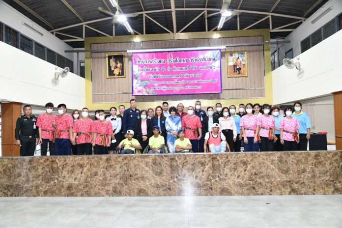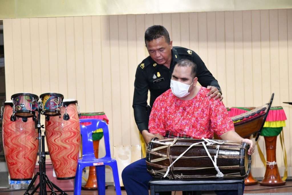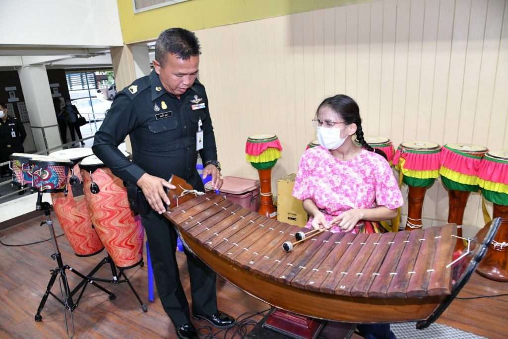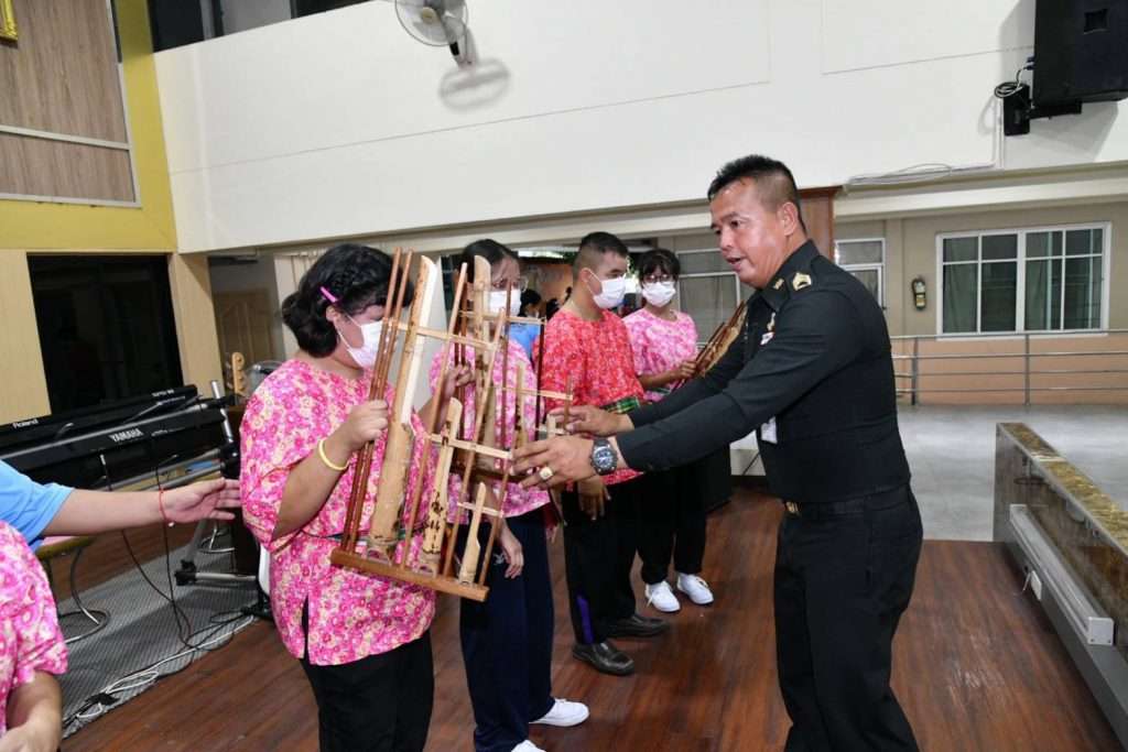 จากนั้น คณะได้ร่วมลงพื้นที่เยี่ยมให้กำลังใจและรับชมการแสดงศักยภาพของน้องๆ ซึ่งเป็นส่วนหนึ่งของการขับเคลื่อนโครงการ “สร้างคน สร้างโอกาส สร้างชาติมั่นคง” ภายใต้แนวคิด “ดี เก่ง กล้า ด้วยดนตรี กีฬา และศิลปะ” โดยเป็นการบูรณาการร่วมกันระหว่างกระทรวงการพัฒนาสังคมและความมั่นคงของมนุษย์ (พม.) และกระทรวงกลาโหม เพื่อเป็นการพัฒนาศักยภาพด้านกีฬาของผู้ใช้บริการและเจ้าหน้าที่ในสังกัดกรมส่งเสริมและพัฒนาคุณภาพชีวิตคนพิการ (พก.) ในพื้นที่อำเภอปากเกร็ด จังหวัดนนทบุรี ได้แก่ สถานคุ้มครองและพัฒนาคนพิการบ้านนนทภูมิ สถานคุ้มครองและพัฒนาคนพิการบ้านราชาวดี (ชาย) สถานคุ้มครองและพัฒนาคนพิการบ้านราชาวดี (หญิง) และศูนย์พัฒนาศักยภาพบุคคลออทิสติก เจ้าหน้าที่จากกองคุ้มครองสวัสดิภาพและพัฒนาคนพิการ โดยได้รับความร่วมมือในการฝึกสอนจากสำนักสวัสดิการทหาร กระทรวงกลาโหม