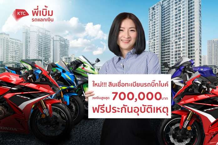 สินเชื่อ “เคทีซี พี่เบิ้ม รถแลกเงิน” เปิดรับรถบิ๊กไบค์ 5 แบรนด์ เหนือกว่าด้วยวงเงินก้อนใหญ่ ไปหาถึงที่ อนุมัติไว รับเงินทันที ฟรีประกัน อุบัติเหตุ