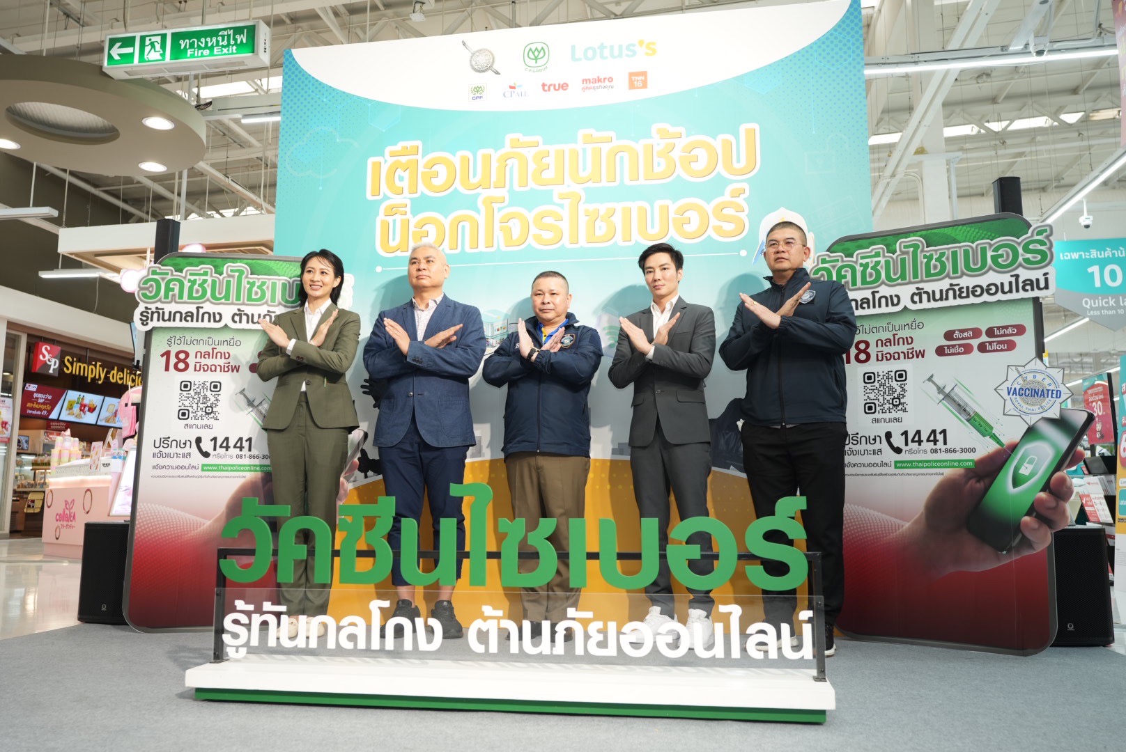 “เตือนภัยนักช้อป น็อกโจร ไซเบอร์” ที่ทางสำนักงานตำรวจแห่งชาติร่วมกับ เครือเจริญโภคภัณฑ์ และโลตัส พร้อม คุณสาคริต นันทจิต รองผู้อำนวยการ ฝ่าย Solution Architect, DevOps และการรักษาความปลอดภัยของข้อมูลและระบบสารสนเทศ โลตัส และ คุณเทวินธวี คุณารัตนวัฒน์ (จอห์นสัน) ดารา/นักแสดง